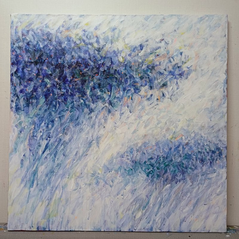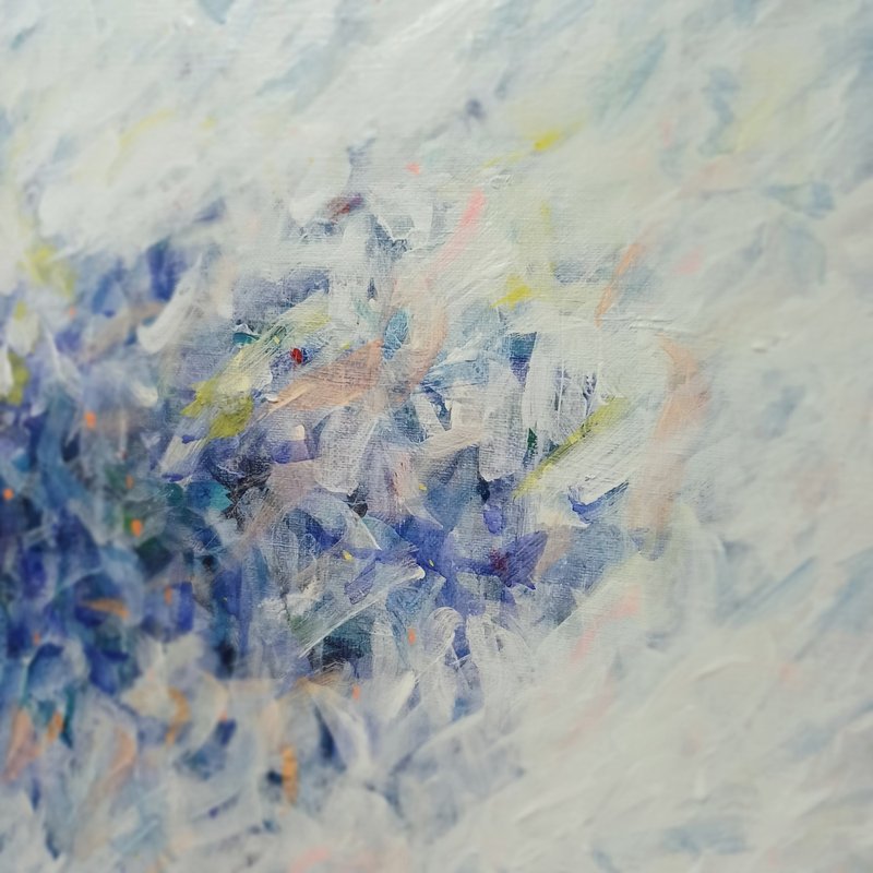 과거의 회상을 마친 작가는 현재 시점에서 느끼는 자신의 심정을 화면에 담아낸다. '새벽', '온유' 등 특정 단어로 자신의 심상을 비유하고 있는 작품들은 작가 특유의 거친 마티에르와 강렬한 색감이 덧입혀지며 자신의 심상을 추상적으로, 그래서 더욱 직설적으로 감상자에게 전달된다. 스스로의 상태를 파악하기 위한 조형적 실험은 작가의 작품이 형태를 분간할 수 없는 추상적인 상태로 등장한다. 뒤엉킨 물감 덩어리들은 작품이 하나의 물체인 것처럼 보이게끔 만들며, 작가의 심정을 오히려 더욱 구체적으로 시각에 잡히게 하는 역할을 한다. 특히 무겁고 채도 낮은 강렬한 원색으로 화면을 가득 채운 점이 인상적인데, 작가가 그림을 그리는 행위에 담긴 복잡한 심경과 절망, 고민을 대변하고 있는 것으로 해석된다. 이러한 작업 과정을 통해 스스로의 내면을 치유해 나가는 작가의 상태는 점차 밝은 색상으로 덮이는 화면을 제시함으로써 드러난다.