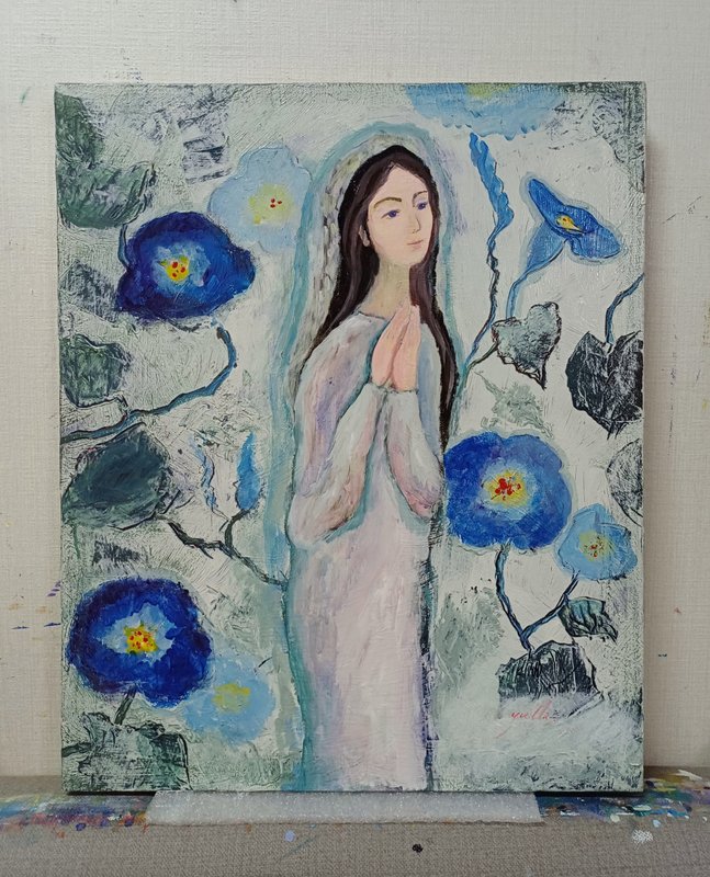 강렬한 컬러들이 뒤섞여있지만 왜인지 모르게 김해진 작가의 작품은 따스하면서 그리운, 어딘가 먹먹한 감정을 뿜어내고 있습니다. 색감을 통해 감정과 심상, 그리고 추억에 관해 이야기하는 작가는, 작품을 통해 감상자로 하여금 각자의 추억과 당시의 심상에 젖어 들게 합니다. 작가는 과거 어머니와의 추억을 회상하고 과거에 대한 심상을 되살려보며 여인의 모습을 화면에 담고 있습니다. 김해진 작가의 작품을 감상하며, 편안하게 우리가 가진 추억들을 되돌아보며 스스로의 마음을 살펴볼 기회가 되었으면 좋겠습니다.