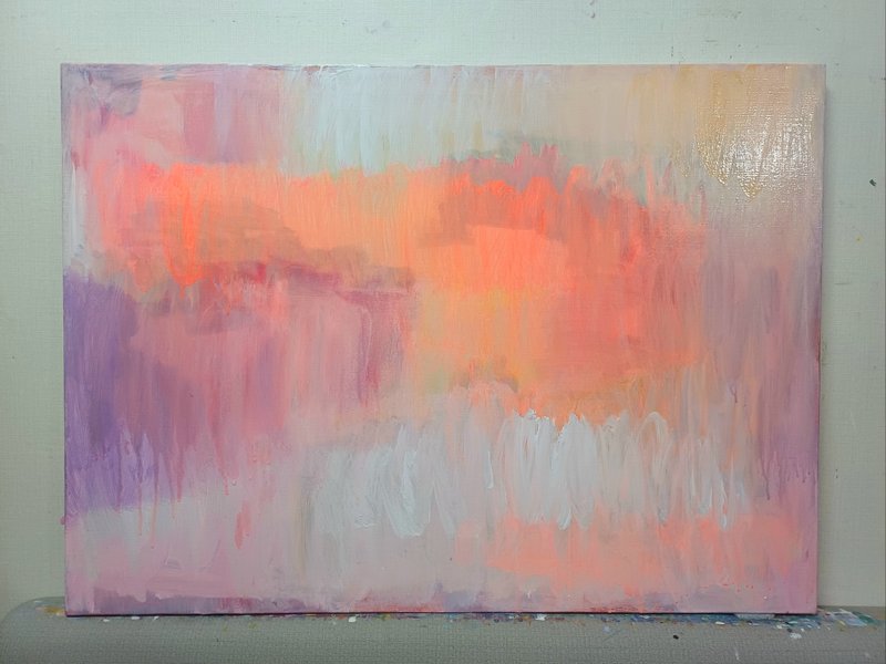 과거의 회상을 마친 작가는 현재 시점에서 느끼는 자신의 심정을 화면에 담아낸다. '새벽', '온유' 등 특정 단어로 자신의 심상을 비유하고 있는 작품들은 작가 특유의 거친 마티에르와 강렬한 색감이 덧입혀지며 자신의 심상을 추상적으로, 그래서 더욱 직설적으로 감상자에게 전달된다. 스스로의 상태를 파악하기 위한 조형적 실험은 작가의 작품이 형태를 분간할 수 없는 추상적인 상태로 등장한다. 뒤엉킨 물감 덩어리들은 작품이 하나의 물체인 것처럼 보이게끔 만들며, 작가의 심정을 오히려 더욱 구체적으로 시각에 잡히게 하는 역할을 한다. 특히 무겁고 채도 낮은 강렬한 원색으로 화면을 가득 채운 점이 인상적인데, 작가가 그림을 그리는 행위에 담긴 복잡한 심경과 절망, 고민을 대변하고 있는 것으로 해석된다. 이러한 작업 과정을 통해 스스로의 내면을 치유해 나가는 작가의 상태는 점차 밝은 색상으로 덮이는 화면을 제시함으로써 드러난다.