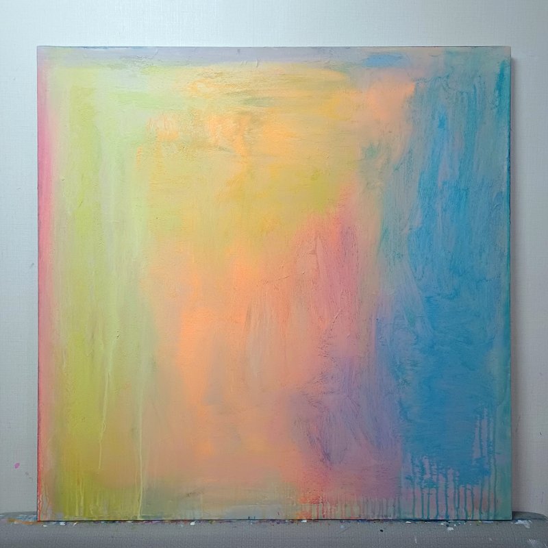 과거의 회상을 마친 작가는 현재 시점에서 느끼는 자신의 심정을 화면에 담아낸다. '새벽', '온유' 등 특정 단어로 자신의 심상을 비유하고 있는 작품들은 작가 특유의 거친 마티에르와 강렬한 색감이 덧입혀지며 자신의 심상을 추상적으로, 그래서 더욱 직설적으로 감상자에게 전달된다. 스스로의 상태를 파악하기 위한 조형적 실험은 작가의 작품이 형태를 분간할 수 없는 추상적인 상태로 등장한다. 뒤엉킨 물감 덩어리들은 작품이 하나의 물체인 것처럼 보이게끔 만들며, 작가의 심정을 오히려 더욱 구체적으로 시각에 잡히게 하는 역할을 한다. 특히 무겁고 채도 낮은 강렬한 원색으로 화면을 가득 채운 점이 인상적인데, 작가가 그림을 그리는 행위에 담긴 복잡한 심경과 절망, 고민을 대변하고 있는 것으로 해석된다. 이러한 작업 과정을 통해 스스로의 내면을 치유해 나가는 작가의 상태는 점차 밝은 색상으로 덮이는 화면을 제시함으로써 드러난다.