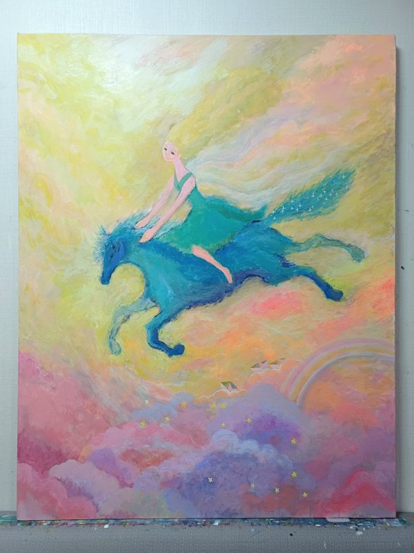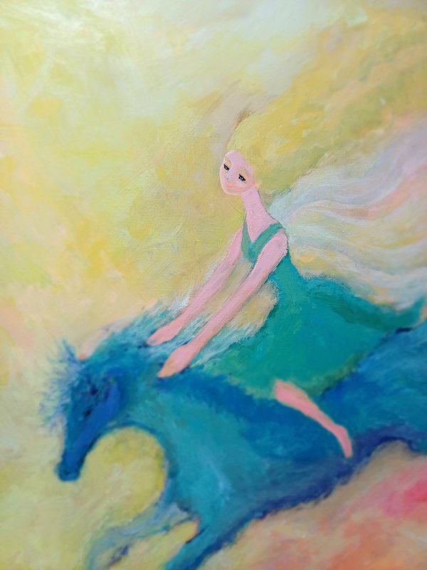 강렬한 컬러들이 뒤섞여있지만 왜인지 모르게 김해진 작가의 작품은 따스하면서 그리운, 어딘가 먹먹한 감정을 뿜어내고 있습니다. 색감을 통해 감정과 심상, 그리고 추억에 관해 이야기하는 작가는, 작품을 통해 감상자로 하여금 각자의 추억과 당시의 심상에 젖어 들게 합니다. 작가는 과거 어머니와의 추억을 회상하고 과거에 대한 심상을 되살려보며 여인의 모습을 화면에 담고 있습니다. 김해진 작가의 작품을 감상하며, 편안하게 우리가 가진 추억들을 되돌아보며 스스로의 마음을 살펴볼 기회가 되었으면 좋겠습니다.
