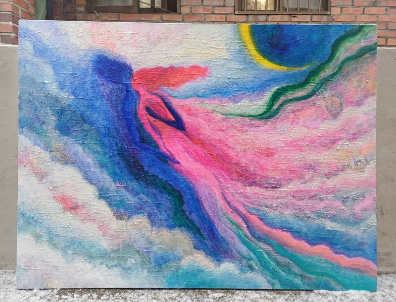 강렬한 컬러들이 뒤섞여있지만 왜인지 모르게 김해진 작가의 작품은 따스하면서 그리운, 어딘가 먹먹한 감정을 뿜어내고 있습니다. 색감을 통해 감정과 심상, 그리고 추억에 관해 이야기하는 작가는, 작품을 통해 감상자로 하여금 각자의 추억과 당시의 심상에 젖어 들게 합니다. 작가는 과거 어머니와의 추억을 회상하고 과거에 대한 심상을 되살려보며 여인의 모습을 화면에 담고 있습니다. 김해진 작가의 작품을 감상하며, 편안하게 우리가 가진 추억들을 되돌아보며 스스로의 마음을 살펴볼 기회가 되었으면 좋겠습니다.