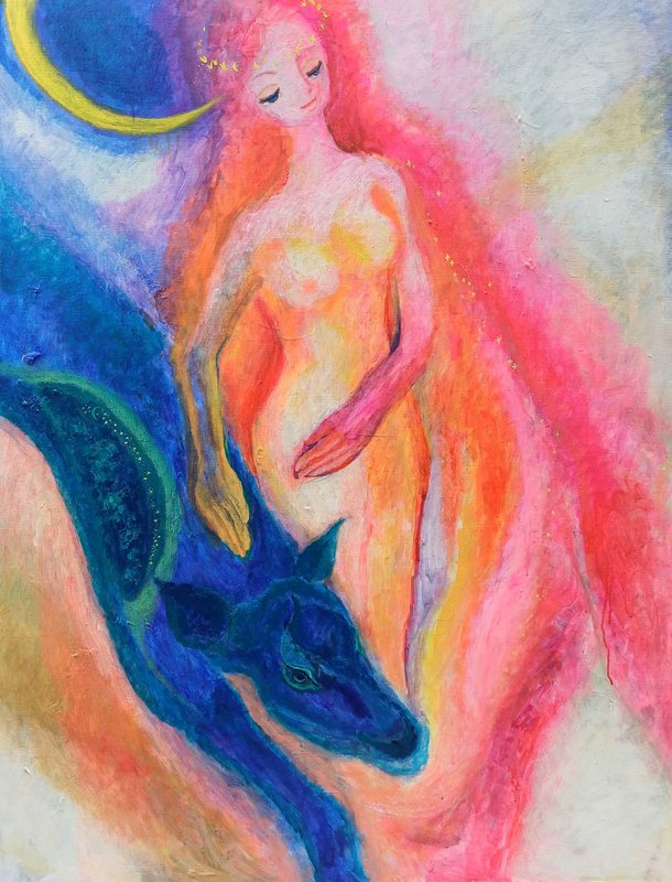 강렬한 컬러들이 뒤섞여있지만 왜인지 모르게 김해진 작가의 작품은 따스하면서 그리운, 어딘가 먹먹한 감정을 뿜어내고 있습니다. 색감을 통해 감정과 심상, 그리고 추억에 관해 이야기하는 작가는, 작품을 통해 감상자로 하여금 각자의 추억과 당시의 심상에 젖어 들게 합니다. 작가는 과거 어머니와의 추억을 회상하고 과거에 대한 심상을 되살려보며 여인의 모습을 화면에 담고 있습니다. 김해진 작가의 작품을 감상하며, 편안하게 우리가 가진 추억들을 되돌아보며 스스로의 마음을 살펴볼 기회가 되었으면 좋겠습니다.
