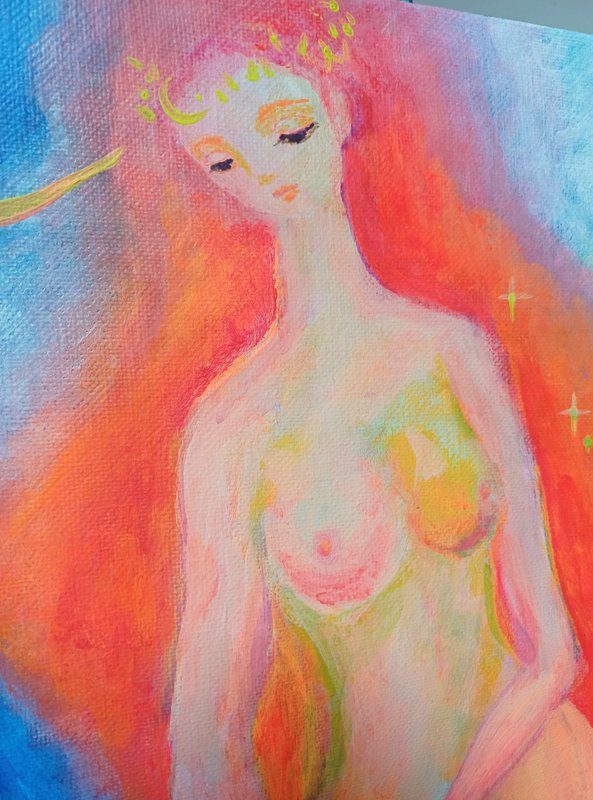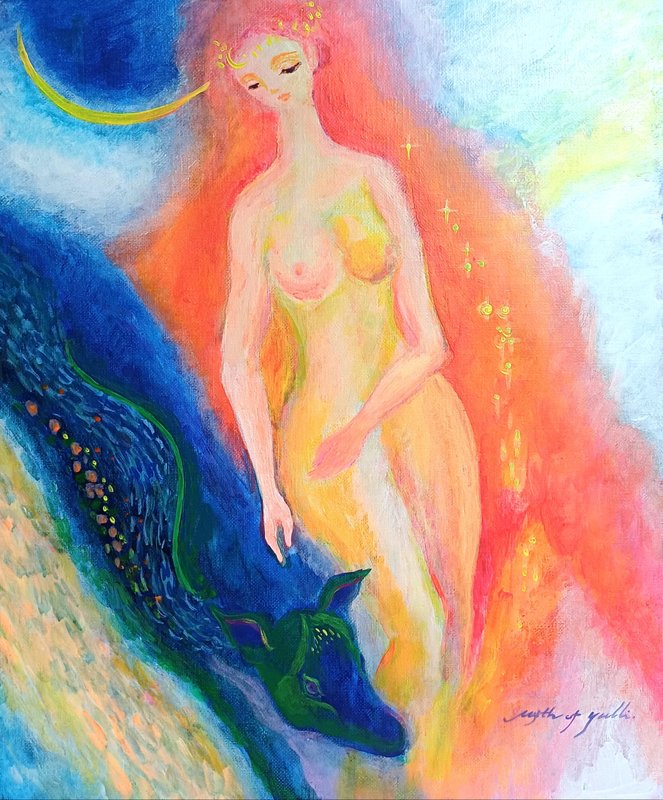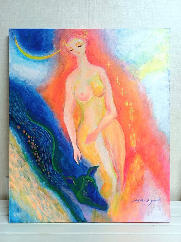 강렬한 컬러들이 뒤섞여있지만 왜인지 모르게 김해진 작가의 작품은 따스하면서 그리운, 어딘가 먹먹한 감정을 뿜어내고 있습니다. 색감을 통해 감정과 심상, 그리고 추억에 관해 이야기하는 작가는, 작품을 통해 감상자로 하여금 각자의 추억과 당시의 심상에 젖어 들게 합니다. 작가는 과거 어머니와의 추억을 회상하고 과거에 대한 심상을 되살려보며 여인의 모습을 화면에 담고 있습니다. 김해진 작가의 작품을 감상하며, 편안하게 우리가 가진 추억들을 되돌아보며 스스로의 마음을 살펴볼 기회가 되었으면 좋겠습니다.