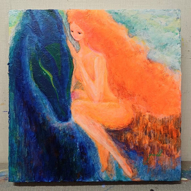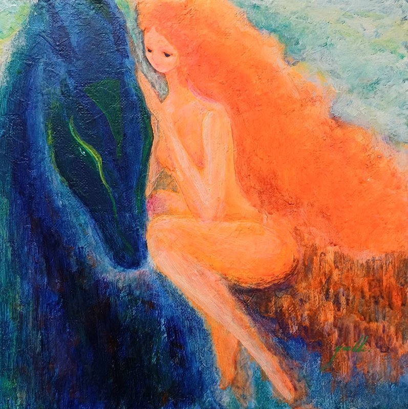 강렬한 컬러들이 뒤섞여있지만 왜인지 모르게 김해진 작가의 작품은 따스하면서 그리운, 어딘가 먹먹한 감정을 뿜어내고 있습니다. 색감을 통해 감정과 심상, 그리고 추억에 관해 이야기하는 작가는, 작품을 통해 감상자로 하여금 각자의 추억과 당시의 심상에 젖어 들게 합니다. 작가는 과거 어머니와의 추억을 회상하고 과거에 대한 심상을 되살려보며 여인의 모습을 화면에 담고 있습니다. 김해진 작가의 작품을 감상하며, 편안하게 우리가 가진 추억들을 되돌아보며 스스로의 마음을 살펴볼 기회가 되었으면 좋겠습니다.