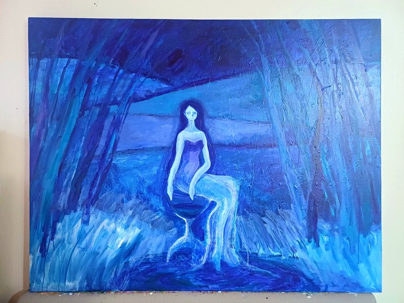강렬한 컬러들이 뒤섞여있지만 왜인지 모르게 김해진 작가의 작품은 따스하면서 그리운, 어딘가 먹먹한 감정을 뿜어내고 있습니다. 색감을 통해 감정과 심상, 그리고 추억에 관해 이야기하는 작가는, 작품을 통해 감상자로 하여금 각자의 추억과 당시의 심상에 젖어 들게 합니다. 작가는 과거 어머니와의 추억을 회상하고 과거에 대한 심상을 되살려보며 여인의 모습을 화면에 담고 있습니다. 김해진 작가의 작품을 감상하며, 편안하게 우리가 가진 추억들을 되돌아보며 스스로의 마음을 살펴볼 기회가 되었으면 좋겠습니다.