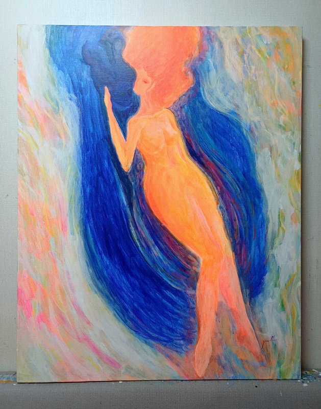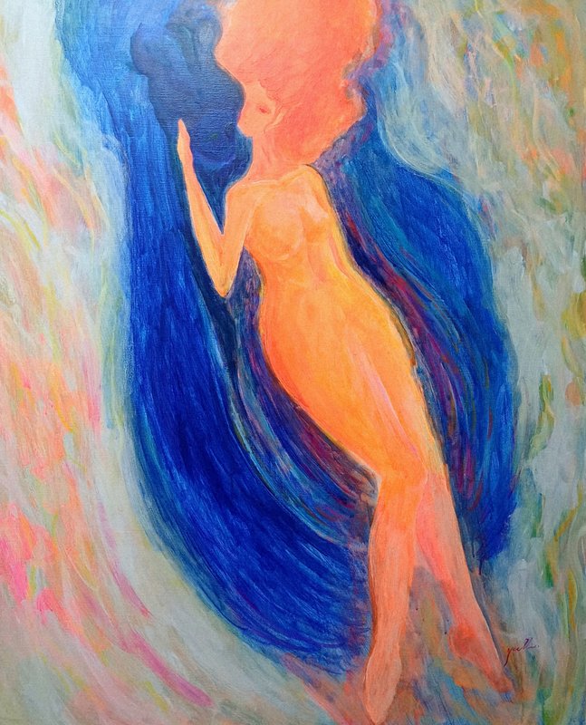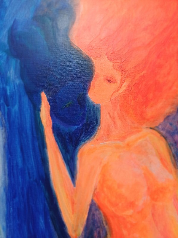 강렬한 컬러들이 뒤섞여있지만 왜인지 모르게 김해진 작가의 작품은 따스하면서 그리운, 어딘가 먹먹한 감정을 뿜어내고 있습니다. 색감을 통해 감정과 심상, 그리고 추억에 관해 이야기하는 작가는, 작품을 통해 감상자로 하여금 각자의 추억과 당시의 심상에 젖어 들게 합니다. 작가는 과거 어머니와의 추억을 회상하고 과거에 대한 심상을 되살려보며 여인의 모습을 화면에 담고 있습니다. 김해진 작가의 작품을 감상하며, 편안하게 우리가 가진 추억들을 되돌아보며 스스로의 마음을 살펴볼 기회가 되었으면 좋겠습니다.