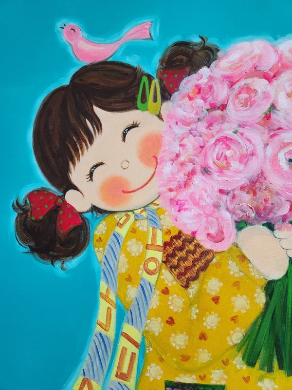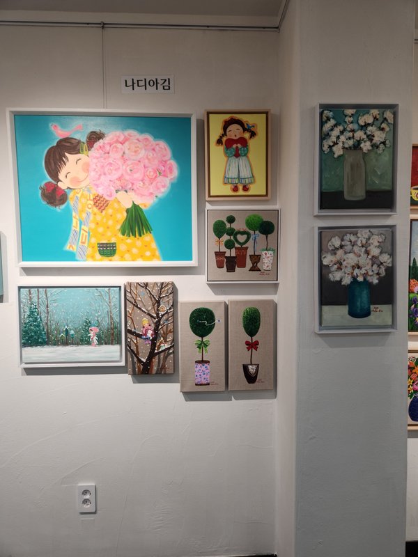 발그레한 두 뺨, 이가 다 드러나도록 환하게 웃는 모습의 아이들 모습은 어린 시절의 행복했던 기억을 떠올리게 합니다. 우리의 내면에는 어린 시절의 미성숙함과 순수한 마음이 남아 있습니다. 다만 어른이 되어 감에 따라 성숙함을 강요받기에, 그 마음은 깊숙이 넣어둔 채 서서히 잃어버리게 됩니다. 나디아 김 작가는 흐릿해져 버린 유년기의 따뜻했던 경험을 되살리며, 어린아이다운 솔직한 시선으로 그림을 그려나갑니다. 알록달록한 색감은 유쾌한 시각적 자극을 선사하며 공간 가득 긍정적인 에너지를 채워 줄 것입니다.