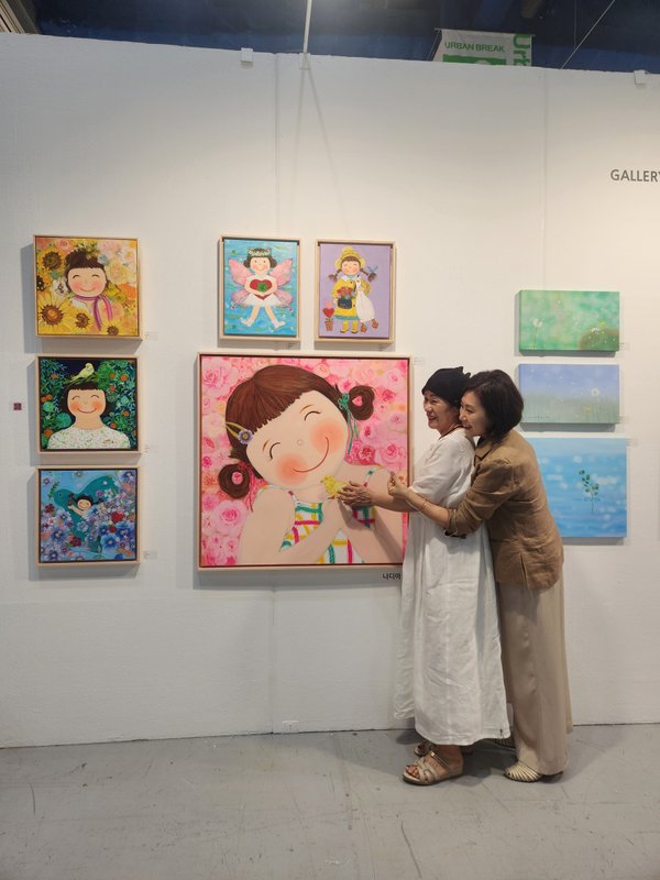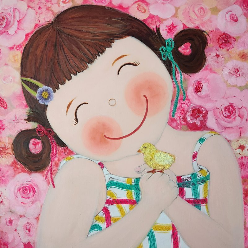 나디아 김 작가는 풍부한 감수성을 불러일으키는 작품을 통해 많은 이들의 사랑을 받는다. 작가는 자신의 마음을 대변하는 상징적 존재로서 어린아이를 등장시킨다. 작품 속 아이들은 언제나 밝은 미소와 천진난만한 모습으로 보는 이들로 하여금 미소를 짓게 한다. 작가는 어린 시절의 따뜻했던 기억을 떠올리며 얻는 긍정적인 감정들을 다채로운 색상과 자유로운 붓 터치를 통해 캔버스 위에 풀어낸다. 따라서 작가가 만들어내는 화면을 바라보면 행복과 즐거움이 느껴짐과 동시에 돌아갈 수 없는 그 시절에 대한 아련한 향수가 느껴지는 것 같기도 하다. 작가는 많은 불안과 걱정을 안고 가는 현대인들이 작품을 통해 위로를 받고 잠시나마 쉬어 갈 수 있는 시간을 갖기를 희망한다.