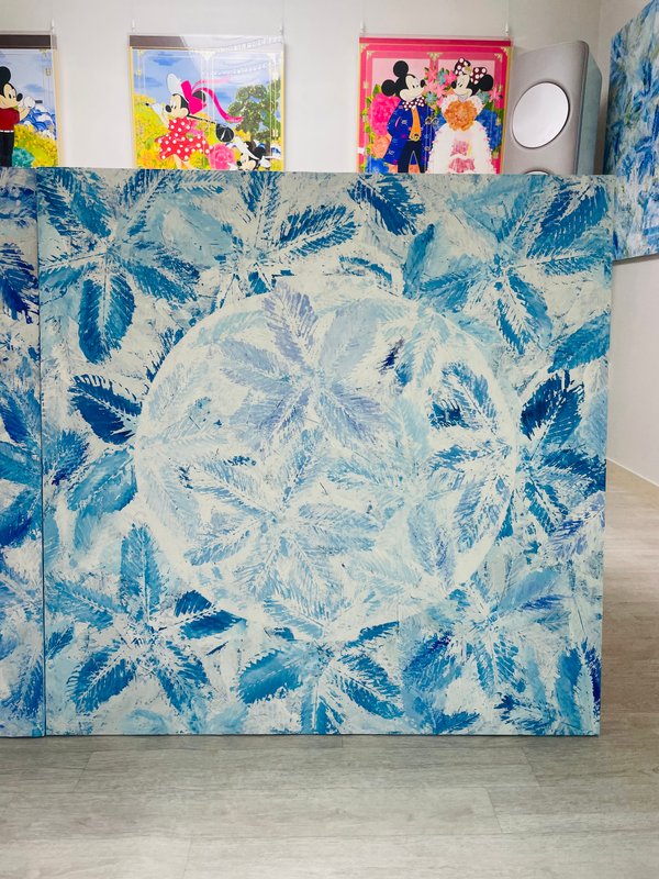 한눈에 보아도 시선을 사로잡는 매력적인 장식성과 색채감이 감상자의 관심을 유발합니다. 장식장이라는 전통 가구 소재 속 가득히 부귀영화를 상징하는 아름다운 꽃밭이 자리 잡고 있습니다. 실제로 가구를 구성하는 경첩, 노리개, 모서리 장식 등의 오브제를 사용하여 평면성에서 벗어나 보다 입체적이고 사실적인 느낌을 더하고 있습니다. 전통의 소재는 예로부터 늘 우리의 곁에 자리 잡은 수호신과 같은 존재로서 이 대상에 대한 존경심이 베어져 있습니다. 부귀영화란 대단한 것이 아닌 가까이 존재해 왔다는 메세지를 전달하며, 우리가 진정 잘 사는 것에 대하여 되돌아보게 만듭니다.