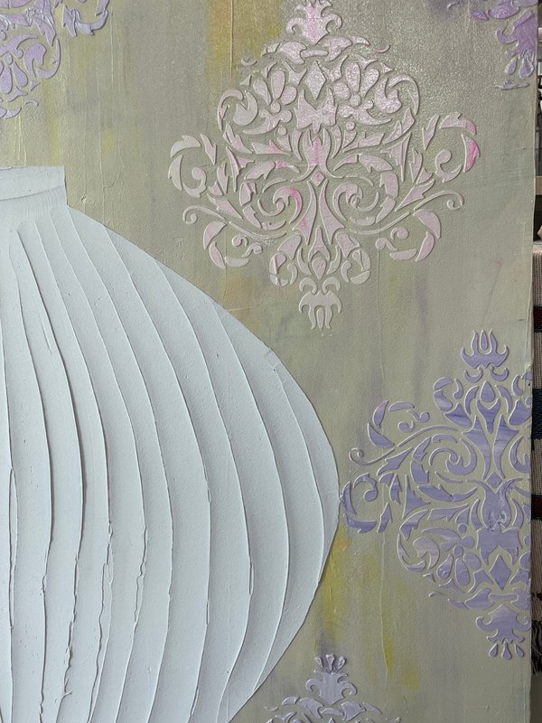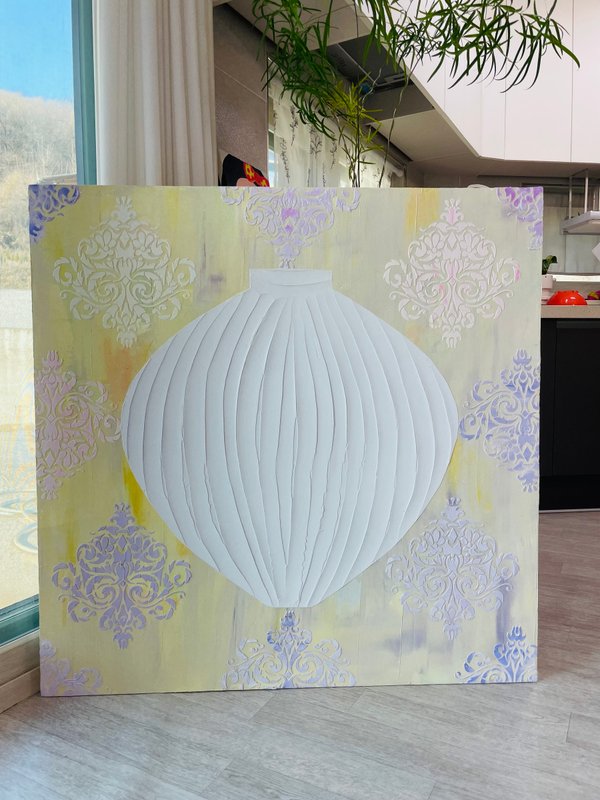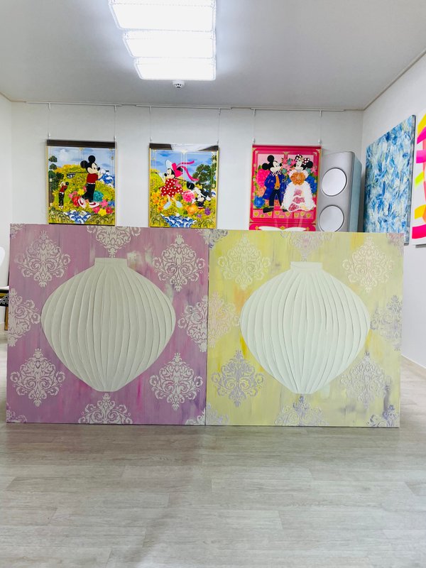 한눈에 보아도 시선을 사로잡는 매력적인 장식성과 색채감이 감상자의 관심을 유발합니다. 달항아리, 자개장과 같은 전통적인 소재 속에는 부귀영화를 상징하는 아름다운 꽃이 자리 잡고 있습니다. 전통의 소재는 예로부터 늘 우리의 곁에 자리 잡은 수호신과 같은 존재로서 이 대상에 대한 존경심이 묻어나 있습니다. 부귀영화란 대단한 것이 아닌 가까이 존재해 왔다는 메세지를 전달하며, 우리가 진정 잘 사는 것에 대하여 되돌아보게 만듭니다. 또한 고전적인 아름다움과 현대적인 재해석으로 감상의 공간에 우아하고 세련된 분위기를 더해줄 것입니다.