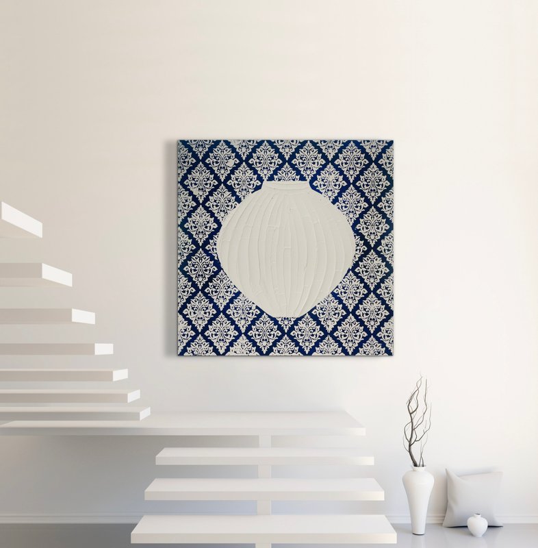 한눈에 보아도 시선을 사로잡는 매력적인 장식성과 색채감이 감상자의 관심을 유발합니다. 달항아리, 자개장과 같은 전통적인 소재 속에는 부귀영화를 상징하는 아름다운 꽃이 자리 잡고 있습니다. 전통의 소재는 예로부터 늘 우리의 곁에 자리 잡은 수호신과 같은 존재로서 이 대상에 대한 존경심이 묻어나 있습니다. 부귀영화란 대단한 것이 아닌 가까이 존재해 왔다는 메세지를 전달하며, 우리가 진정 잘 사는 것에 대하여 되돌아보게 만듭니다. 또한 고전적인 아름다움과 현대적인 재해석으로 감상의 공간에 우아하고 세련된 분위기를 더해줄 것입니다.
