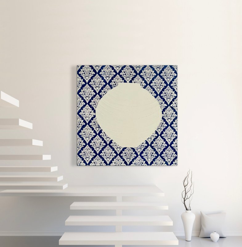 한눈에 보아도 시선을 사로잡는 매력적인 장식성과 색채감이 감상자의 관심을 유발합니다. 장식장이라는 전통 가구 소재 속 가득히 부귀영화를 상징하는 아름다운 꽃밭이 자리 잡고 있습니다. 실제로 가구를 구성하는 경첩, 노리개, 모서리 장식 등의 오브제를 사용하여 평면성에서 벗어나 보다 입체적이고 사실적인 느낌을 더하고 있습니다. 전통의 소재는 예로부터 늘 우리의 곁에 자리 잡은 수호신과 같은 존재로서 이 대상에 대한 존경심이 베어져 있습니다. 부귀영화란 대단한 것이 아닌 가까이 존재해 왔다는 메세지를 전달하며, 우리가 진정 잘 사는 것에 대하여 되돌아보게 만듭니다.