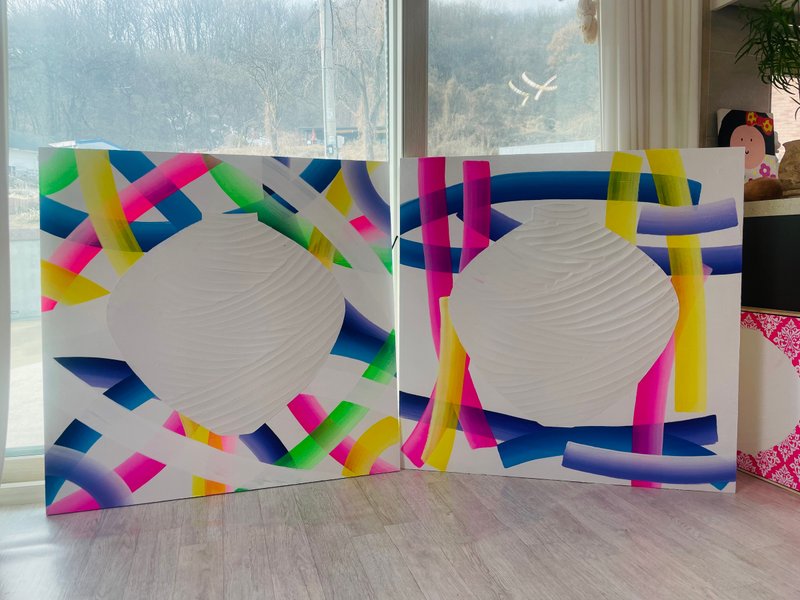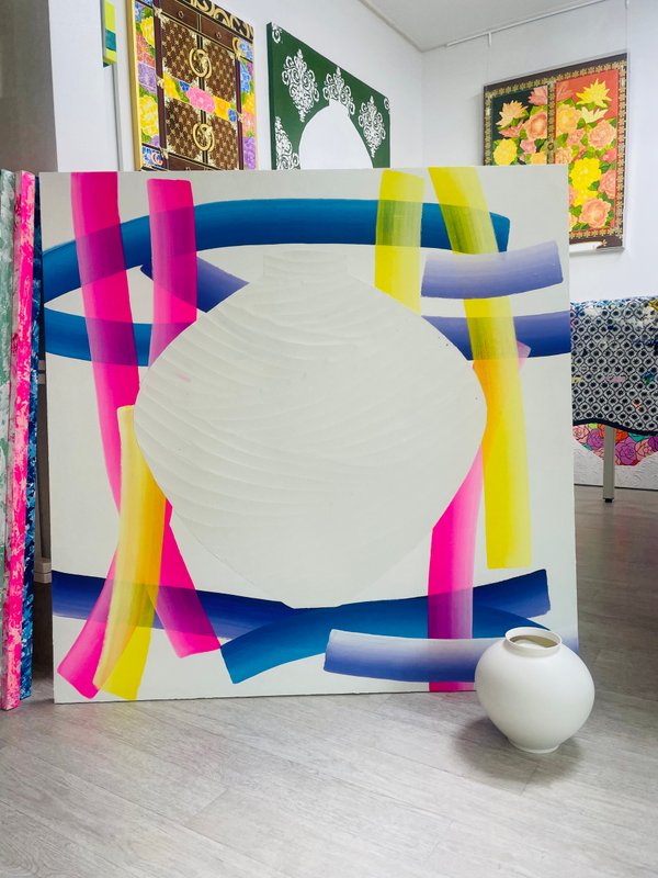 한눈에 보아도 시선을 사로잡는 매력적인 장식성과 색채감이 감상자의 관심을 유발합니다. 달항아리, 자개장과 같은 전통적인 소재 속에는 부귀영화를 상징하는 아름다운 꽃이 자리 잡고 있습니다. 전통의 소재는 예로부터 늘 우리의 곁에 자리 잡은 수호신과 같은 존재로서 이 대상에 대한 존경심이 묻어나 있습니다. 부귀영화란 대단한 것이 아닌 가까이 존재해 왔다는 메세지를 전달하며, 우리가 진정 잘 사는 것에 대하여 되돌아보게 만듭니다. 또한 고전적인 아름다움과 현대적인 재해석으로 감상의 공간에 우아하고 세련된 분위기를 더해줄 것입니다.