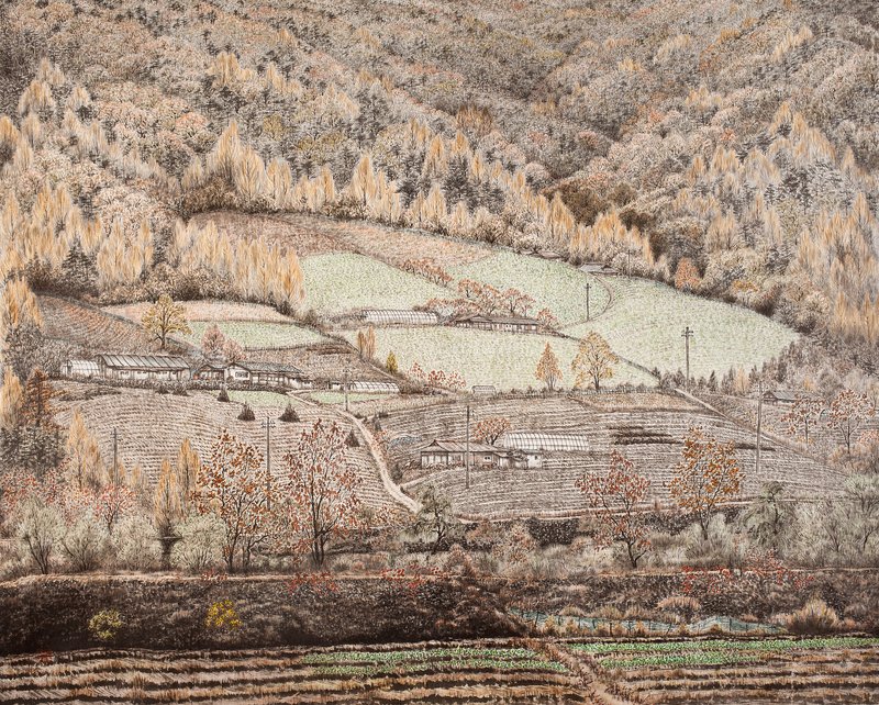 여러 차례의 채색을 거쳐 완성되는 이진일 작가의 작품에서는 무엇보다 차분한 색감들과 고요함이 느껴집니다. 과거 중국 북송 때의 화가 곽희는 자신의 글 『임천고치』에서 예술가의 자유로운 영감은 대작을 만들어 내는 창조의 원천이며, 산수를 주요 표현 대상으로 하는 예술은 사람의 마음을 평온하게 해준다고 갈파하였다 하는데요. 작가의 예술적 심상을 작품으로 표현해낸 이진일 작가의 작품 속에서 느껴지는 평온함 역시 그의 지속적인 연구와 고민, 실천을 통해서 만들어진 심상이 아닐까요? 편안한 마음으로 작가의 예술세계를 느끼며 이진일 작가의 작품을 감상해보는 것은 어떨까요.