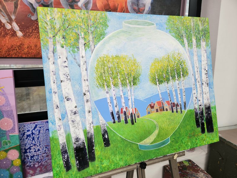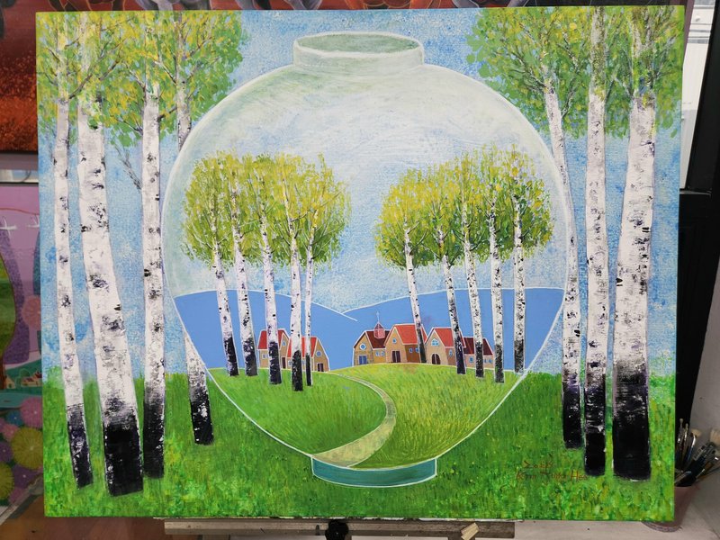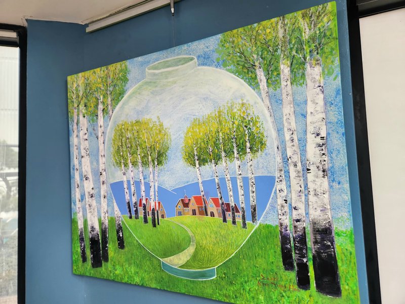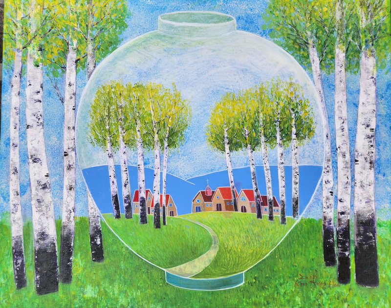 김정희 작가에게 그림을 그리는 행위는 행복과 평안을 의미한다. 자연에 몸담고 있을 때의 감정과 자유를 만끽하며 행복한 감정이 충만해진 순간을 그림에 담기 위해 작가는 야외로 나가 실경을 관찰한다. 그러나 작품에 담기는 모습은 자연 속에서 얻은 인상에 가깝다. 따라서 자연은 작가의 감정이 투영된 추상적 표현이 결합하여 나타난다. 관찰에 의한 정확한 형태감과 함께 다양한 재료의 특성을 자유자재로 구상하는 작가의 조형 감각은 화면 위에서 조화를 이루며 색다른 풍경을 만들어낸다. 상대방의 눈을 멈추게 하고, 감동을 주는 작가가 되고 싶다는 작가의 말처럼 작품들 하나하나가 그 독특한 구성으로 인해 시선을 이끈다. 자연 속에서 한껏 차오르는 감정의 고조를 경험해 본 경험이 있다면 김정희 작가의 작품이 더욱 특별하게 느껴질 것이다.