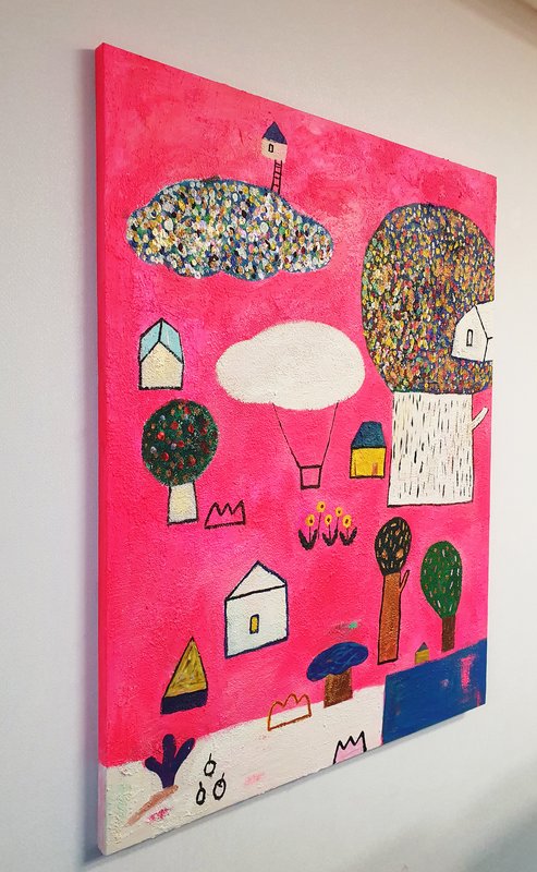 자연과 동물 등의 따듯한 형태들은 감상자들에게 안식처가 되어 줍니다. 동화적이면서도 따뜻한 컬러감과 자유로운 형태들은 편안함과 상상을 불러일으킵니다. 지쳤던 하루에서 벗어나 소소하고 즐거운 화면을 따뜻하게 재탄생 시킨 작품을 감상함으로써 일상을 환기시켜보는 것은 어떨까요? 작품 한 점으로 여백의 공간에 활기를 불어 넣어 시각적 즐거움을 느낄 수 있을 것입니다.
