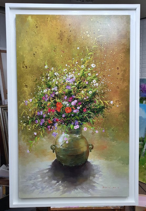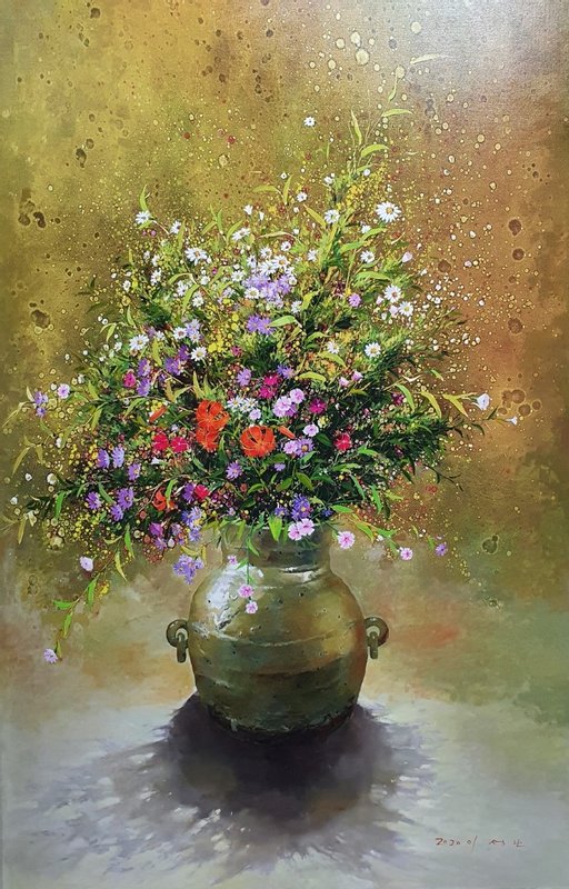 한국에서 널리 자생하는 라일락, 패랭이, 소국 등 여러 들꽃을 익숙하게 알고 있지만, 그것들의 이름을 정확하게 알기는 꽤 어렵습니다. 우리가 일상에서 쉽게 지나쳐갔던 작은 꽃들에 주목하고 작가의 시선에서 보인 꽃과 자연의 모습을 이석보 작가는 사실주의적 기법을 통해 표현합니다. 꽤 다채롭게 구성된 작품 속 꽃들은 그 이름을 하나씩 헤아려보는 재미마저 들 정도로 정확한 묘사를 통해 그려졌습니다. 꽃을 향한 인간의 사랑은 꽃과 인간이 공존했을 때부터 시작되어 현재까지도 인간은 이미지를 통해서라도 꽃을 소유하려 합니다. 꽃을 단순한 의미로 두는 것이 아닌 작은 의미에서의 자연으로써의 의미를 갖게 하며 인간은 주변에 꽃(자연)을 두어 힐링을 시도합니다. 자연을 담은 꽃과 그것을 따뜻한 시선으로 바라본 이석보 작가의 작품은 감상자와 주변 환경을 더욱 따스하고 안정적으로 만들어줍니다.