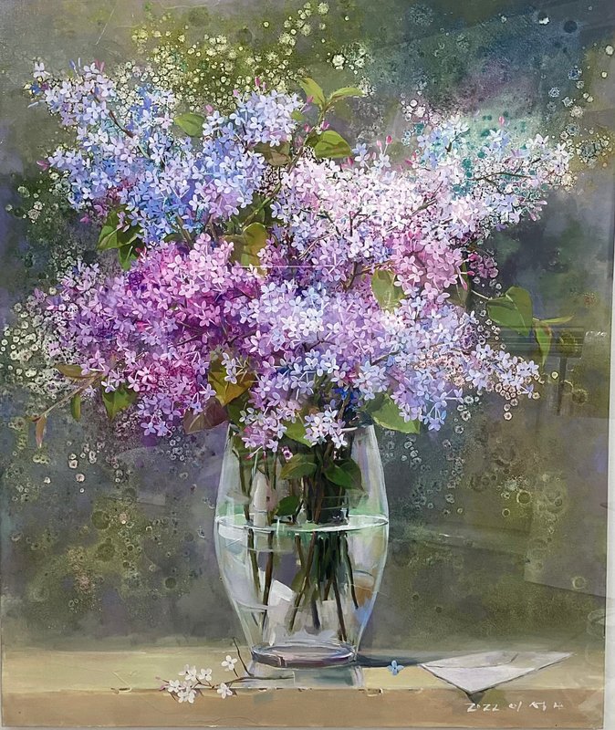 한국에서 널리 자생하는 라일락, 패랭이, 소국 등 여러 들꽃을 익숙하게 알고 있지만, 그것들의 이름을 정확하게 알기는 꽤 어렵습니다. 우리가 일상에서 쉽게 지나쳐갔던 작은 꽃들에 주목하고 작가의 시선에서 보인 꽃과 자연의 모습을 이석보 작가는 사실주의적 기법을 통해 표현합니다. 꽤 다채롭게 구성된 작품 속 꽃들은 그 이름을 하나씩 헤아려보는 재미마저 들 정도로 정확한 묘사를 통해 그려졌습니다. 꽃을 향한 인간의 사랑은 꽃과 인간이 공존했을 때부터 시작되어 현재까지도 인간은 이미지를 통해서라도 꽃을 소유하려 합니다. 꽃을 단순한 의미로 두는 것이 아닌 작은 의미에서의 자연으로써의 의미를 갖게 하며 인간은 주변에 꽃(자연)을 두어 힐링을 시도합니다. 자연을 담은 꽃과 그것을 따뜻한 시선으로 바라본 이석보 작가의 작품은 감상자와 주변 환경을 더욱 따스하고 안정적으로 만들어줍니다.