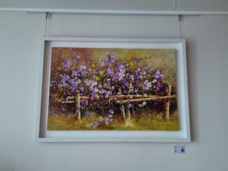 한국에서 널리 자생하는 라일락, 패랭이, 소국 등 여러 들꽃을 익숙하게 알고 있지만, 그것들의 이름을 정확하게 알기는 꽤 어렵습니다. 우리가 일상에서 쉽게 지나쳐갔던 작은 꽃들에 주목하고 작가의 시선에서 보인 꽃과 자연의 모습을 이석보 작가는 사실주의적 기법을 통해 표현합니다. 꽤 다채롭게 구성된 작품 속 꽃들은 그 이름을 하나씩 헤아려보는 재미마저 들 정도로 정확한 묘사를 통해 그려졌습니다. 꽃을 향한 인간의 사랑은 꽃과 인간이 공존했을 때부터 시작되어 현재까지도 인간은 이미지를 통해서라도 꽃을 소유하려 합니다. 꽃을 단순한 의미로 두는 것이 아닌 작은 의미에서의 자연으로써의 의미를 갖게 하며 인간은 주변에 꽃(자연)을 두어 힐링을 시도합니다. 자연을 담은 꽃과 그것을 따뜻한 시선으로 바라본 이석보 작가의 작품은 감상자와 주변 환경을 더욱 따스하고 안정적으로 만들어줍니다.