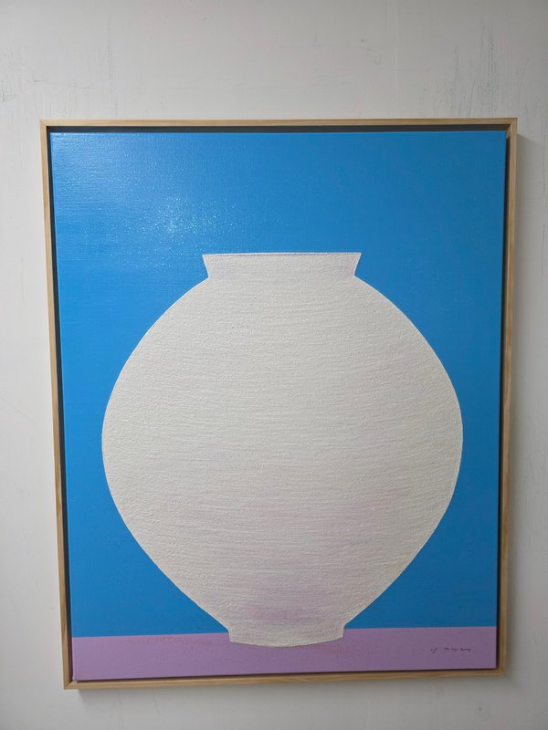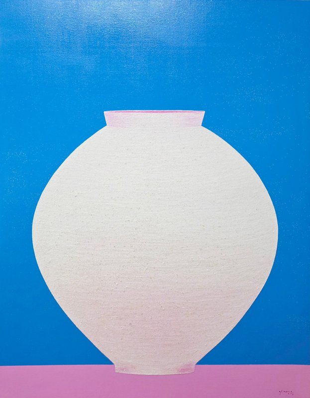 밥그릇 위에 쌀알처럼 소복이 담긴 꽃들과 달 항아리 위에 화사한 꽃가지를 한 아름 꺾어다 둔 듯한 모습들이 보입니다. 그 주위에는 나비가 등장하기도 하고, 방긋한 미소를 띤 작은 사람의 형상이 등장하기도 합니다. 이장옥 작가의 작품은 보는 내내 화사한 꽃다발을 선물 받은 듯 향긋한 행복감이 넘쳐나는 듯합니다. 조형적으로 완벽한 아름다움보다는 부정형의 형태에서 오는 순수함이 특징인 달 항아리는 복을 담는다고 하지요? 작가의 마음이 담긴 듯 밥그릇 위로 소복한 꽃밥에서도 푸근하고 넉넉한 따뜻함이 느껴집니다. 이장옥 작가의 작품을 통해 가내에 행복과 희망, 넘치는 복을 기원하는 마음을 담아 공간을 화사하게 바꾸어 보시는 것은 어떨까요?