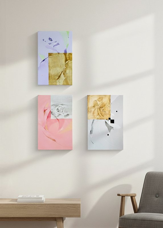 꽃이 지닌 사랑과 조화의 상징성, 그리고 서로의 다름을 존중하는 메시지는 작품을 단순한 장식 이상의 의미로 확장시킵니다. 각 요소가 과하게 앞서 나서지 않고, 서로의 자리를 지키며 균형을 이루는 흐름이 자연스럽게 공존의 가치를 드러냅니다. 서로 다른 색과 형태가 유기적으로 어우러진 화면 구성은 공간에 자연스러운 안정감과 생기를 동시에 부여합니다. 선과 면 중심의 간결한 조형 언어는 과하지 않으면서도 충분한 존재감을 지니고 있어 다양한 인테리어와 조화롭게 어울립니다. 특히 원색과 부드러운 색감의 균형은 공간을 환하게 밝히면서도 편안한 분위기를 유지시켜줍니다. 일상 속에서 긍정적인 감정과 따뜻한 에너지를 느끼고자 하는 이들에게 적합한 작품입니다.