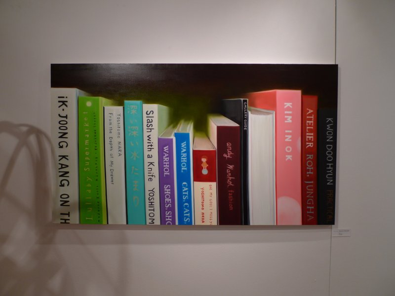 정자영 작가는 책들이 가지런히 꽂혀있는 책장의 모습을 그림에 옮겨 담는다. 누군가의 집에 가면 책장에 어떤 책들이 꽂혀있는지 살펴보며 그 사람의 관심사를 짐작해 본다는 작가는, 타인에 대한 호기심과 책이라는 대상에 대한 애착으로 이러한 소재를 그리기 시작했다고 한다. 책에는 수많은 이야기와 정보들이 담겨있다. 이들이 누군가의 손길을 기다리면서 꽂혀있는 모습이 작가에게는 묘한 긴장감을 불러왔다. 특히 곳곳에 보이는 미술사 거장들의 이름은 화가의 이야기와 책이라는 플랫폼이 가진 성격이 만나 새로운 가치를 창출하게 된다. 간혹 감상자가 이미 소장한, 또는 읽어본 적이 있는 책들을 발견할 때가 있다면, 그것이 그려진 작품을 통해 새로운 시각과 감정을 불러다 줄 수 있기를 희망한다.