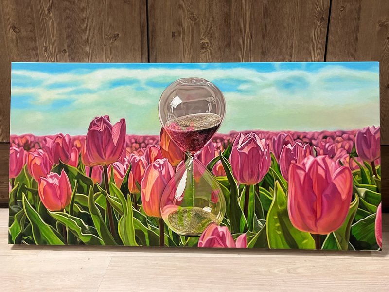 시간이란 눈에 보이지 않는 산물로서 나도 모르는 사이에 금세 지나가 버립니다. 당연히 흘러가는 일상에서, 사람들은 각자 우여곡절을 겪으며 앞으로 나아갑니다. 이러한 순간들이 쌓여 우리의 인생을 만들고, 자아를 단단하게 성장시킵니다. 김효진 작가는 바로 이러한 '시간'에 대한 탐구를 통해, 모래시계를 비롯한 각종 정물을 조합하여 캔버스에 담아냅니다. 이때 정물과 풍경으로 구성된 화면은, 시간을 가시적으로 시각화하는 동시에 쌓인 시간의 단면을 나타냅니다. 많은 사람들은 시간의 유한함에만 치우쳐, 그간의 노력과 결실은 돌아보지 못하는 경우가 많습니다. 하지만 흘러간 시간 속에는 크고 작은 의미가 가득합니다. 여러분들도 잠시 멈춰진 작품 속 풍경을 감상하며, 삶 속에 피어난 모든 순간의 찬란함을 마음 깊이 느껴보시길 추천 드립니다.
