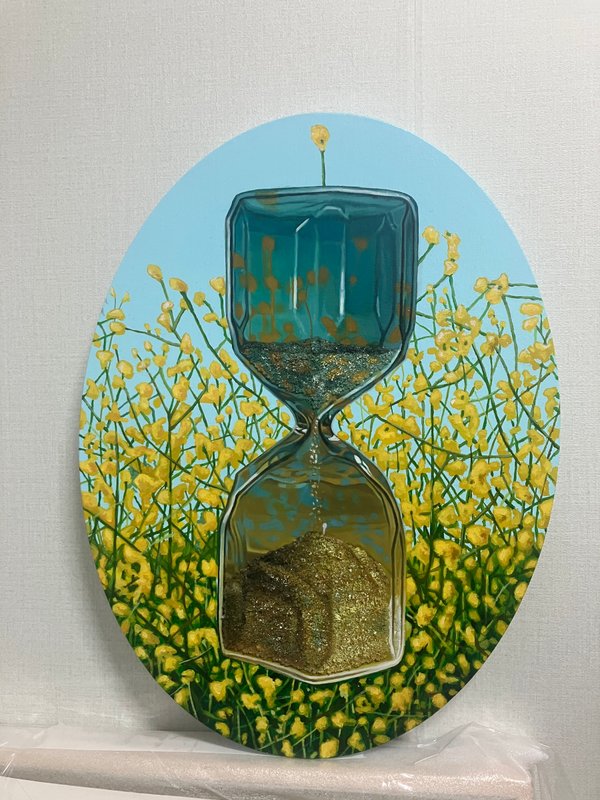 시간이란 눈에 보이지 않는 산물로서 나도 모르는 사이에 금세 지나가 버립니다. 당연히 흘러가는 일상에서, 사람들은 각자 우여곡절을 겪으며 앞으로 나아갑니다. 이러한 순간들이 쌓여 우리의 인생을 만들고, 자아를 단단하게 성장시킵니다. 김효진 작가는 바로 이러한 '시간'에 대한 탐구를 통해, 모래시계를 비롯한 각종 정물을 조합하여 캔버스에 담아냅니다. 이때 정물과 풍경으로 구성된 화면은, 시간을 가시적으로 시각화하는 동시에 쌓인 시간의 단면을 나타냅니다. 많은 사람들은 시간의 유한함에만 치우쳐, 그간의 노력과 결실은 돌아보지 못하는 경우가 많습니다. 하지만 흘러간 시간 속에는 크고 작은 의미가 가득합니다. 여러분들도 잠시 멈춰진 작품 속 풍경을 감상하며, 삶 속에 피어난 모든 순간의 찬란함을 마음 깊이 느껴보시길 추천 드립니다.