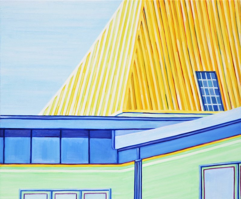 일상에서 흔하게 마주할 수 있는 풍경과 건물들은 이다연 작가에게 중요한 작품의 소재가 됩니다. 작가는 카메라로 자신의 시선이 닿은 풍경을 촬영합니다. 카메라로 풍경이나 사물을 담는 행위는 구도나 대상의 측면에서 이미 작가의 의도와 계획이 충분히 담겨있는 것입니다. 이렇게 담아낸 풍경에 작가는 자신만의 감각적인 색채와 구도, 그리고 그 순간적인 시간의 감성을 회화적 표현으로 녹여냅니다. 우리는 익숙한 풍경에 그다지 시선을 주지 않지만 사실 오래도록 기억에 남는 편안하고 아련한 감정을 자아내는 것은 바로 이와 같은 일상적인 풍경일 것입니다. 작가는 이처럼 소중한 순간과 공간들에 자신의 감각을 더해 온전히 자신만의 기억으로 승화시키는 모습입니다. 여러분에게는 익숙한 풍경이 어떠한 기억으로 남아있나요?