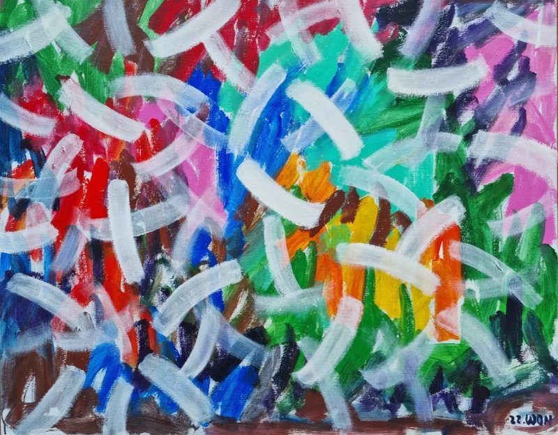 일상적인 풍경을 그려내던 것에서 나아가 작가는 구체적인 이미지를 분해하고 반복해 중첩시키면서 점차 추상적인 이미지를 만들어내고 있다. 특히나 이 추상화로 변해가는 작가의 시리즈에서 눈에 들어오는 특징은 반복이다. 반복적으로 붓질을 했던 흔적, 작가가 작품을 위해 움직였던 과정이 보이는 작품들은 작가가 일상을 경험하는 모든 감각을 보여주며, 그로 인해 작가 스스로가 실존하고 있다는 점을 인지하는 것처럼 느껴지기도 한다. 조형 언어의 가장 기본이 되는 단위로 세상을 보고 느끼려는 작가의 의지는 어쩌면 작가로서 가질 수 있는 순수한 작품 동기가 아닐지 생각한다.