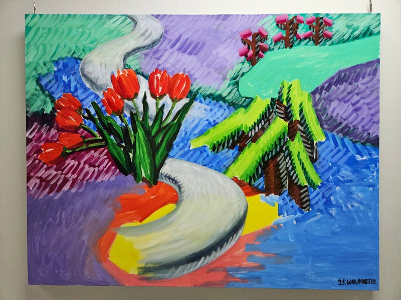 일상적인 풍경을 그려내던 것에서 나아가 작가는 구체적인 이미지를 분해하고 반복해 중첩시키면서 점차 추상적인 이미지를 만들어내고 있다. 특히나 이 추상화로 변해가는 작가의 시리즈에서 눈에 들어오는 특징은 반복이다. 반복적으로 붓질을 했던 흔적, 작가가 작품을 위해 움직였던 과정이 보이는 작품들은 작가가 일상을 경험하는 모든 감각을 보여주며, 그로 인해 작가 스스로가 실존하고 있다는 점을 인지하는 것처럼 느껴지기도 한다. 조형 언어의 가장 기본이 되는 단위로 세상을 보고 느끼려는 작가의 의지는 어쩌면 작가로서 가질 수 있는 순수한 작품 동기가 아닐지 생각한다.