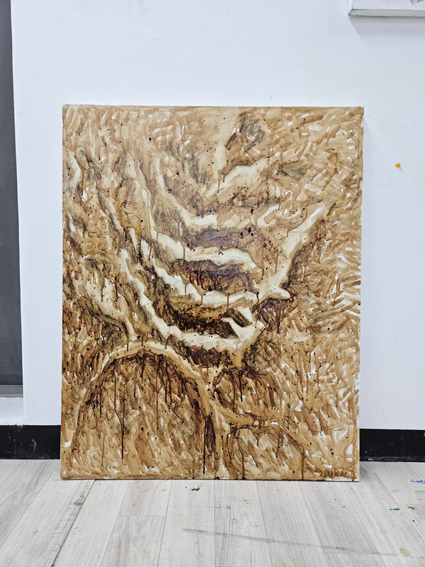 캔버스에 아크릴, 커피, 연필