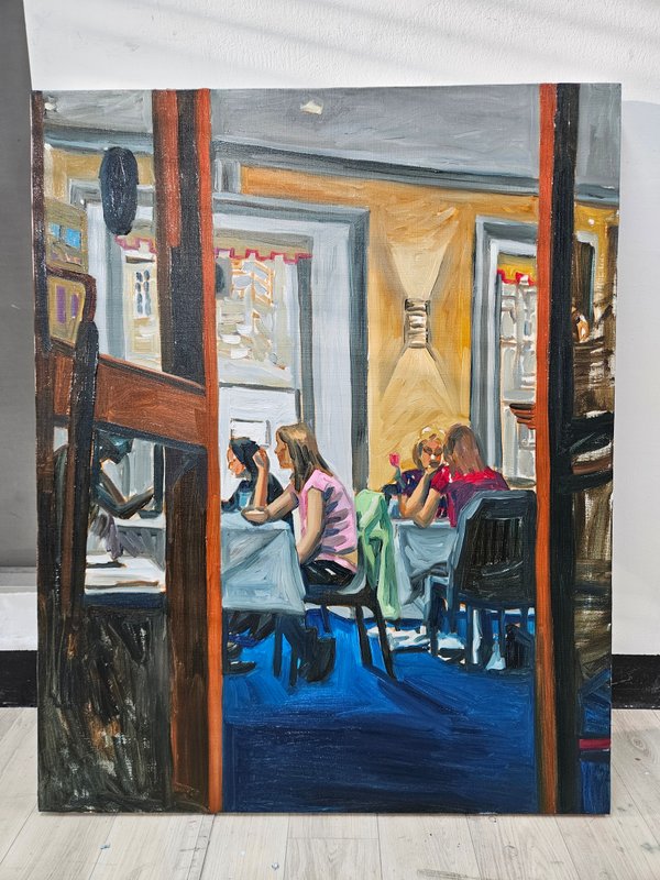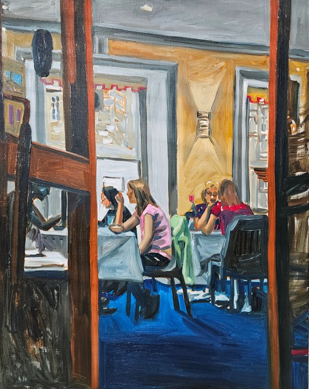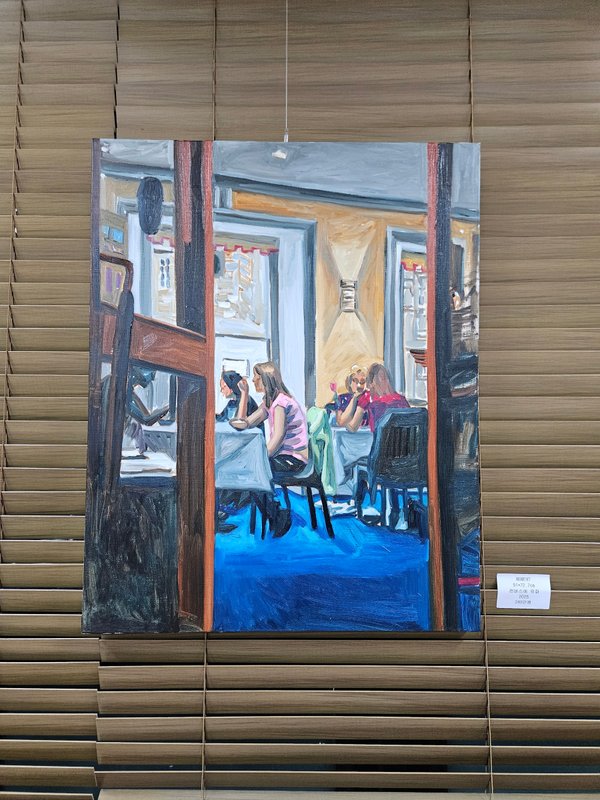 원혜리 작가는 일상의 순간 중에서도 특히나 여유롭고 편안한 분위기의 장면들을 포착해 작품으로 그렸다. 여행지에서 촬영한 사진 같기도 한 이 시리즈에서 작가는 자신의 시선이 닿는 모든 곳, 모든 사물을 호기심 넘치는 태도로 바라본 것이 느껴진다. 일상적으로 마주하는 카페의 풍경, 길거리의 다양한 공공물들은 문화적 배경에 의해 조금씩 다른 모습을 보여주며 이를 우리는 주로 '이국적이다'라는 표현으로 부르고는 한다. 작가도 이처럼 이국적인 모습에 대한 호기심과 환기된 감각들을 오래도록 기억하고 간직하고자 자신의 표현을 더 해 작품으로 기록해 놓은 것이라 보인다. 한편, 일상 풍경을 담은 작품 중에는 화분을 포커싱하여 그린 것들도 있다. 어떤 이의 공간을 들여다보려는 행위가 식물로 분산되며 자신의 호기심과 애틋한 마음을 조심스럽게 표현하고 있는 것으로 보인다. 이처럼 작가의 일상적인 풍경은 특유의 편안함과 순수한 시선을 가지고 있어 누구에게나 기분 좋은 감상의 시간을 제공해 주리라 생각한다.