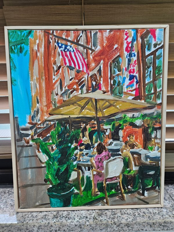 원혜리 작가는 일상의 순간 중에서도 특히나 여유롭고 편안한 분위기의 장면들을 포착해 작품으로 그렸다. 여행지에서 촬영한 사진 같기도 한 이 시리즈에서 작가는 자신의 시선이 닿는 모든 곳, 모든 사물을 호기심 넘치는 태도로 바라본 것이 느껴진다. 일상적으로 마주하는 카페의 풍경, 길거리의 다양한 공공물들은 문화적 배경에 의해 조금씩 다른 모습을 보여주며 이를 우리는 주로 '이국적이다'라는 표현으로 부르고는 한다. 작가도 이처럼 이국적인 모습에 대한 호기심과 환기된 감각들을 오래도록 기억하고 간직하고자 자신의 표현을 더 해 작품으로 기록해 놓은 것이라 보인다. 한편, 일상 풍경을 담은 작품 중에는 화분을 포커싱하여 그린 것들도 있다. 어떤 이의 공간을 들여다보려는 행위가 식물로 분산되며 자신의 호기심과 애틋한 마음을 조심스럽게 표현하고 있는 것으로 보인다. 이처럼 작가의 일상적인 풍경은 특유의 편안함과 순수한 시선을 가지고 있어 누구에게나 기분 좋은 감상의 시간을 제공해 주리라 생각한다.