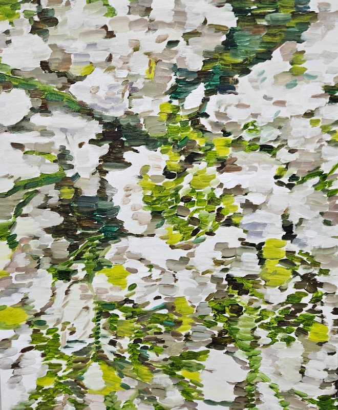 일상적인 풍경을 그려내던 것에서 나아가 작가는 구체적인 이미지를 분해하고 반복해 중첩시키면서 점차 추상적인 이미지를 만들어내고 있다. 특히나 이 추상화로 변해가는 작가의 시리즈에서 눈에 들어오는 특징은 반복이다. 반복적으로 붓질을 했던 흔적, 작가가 작품을 위해 움직였던 과정이 보이는 작품들은 작가가 일상을 경험하는 모든 감각을 보여주며, 그로 인해 작가 스스로가 실존하고 있다는 점을 인지하는 것처럼 느껴지기도 한다. 조형 언어의 가장 기본이 되는 단위로 세상을 보고 느끼려는 작가의 의지는 어쩌면 작가로서 가질 수 있는 순수한 작품 동기가 아닐지 생각한다.