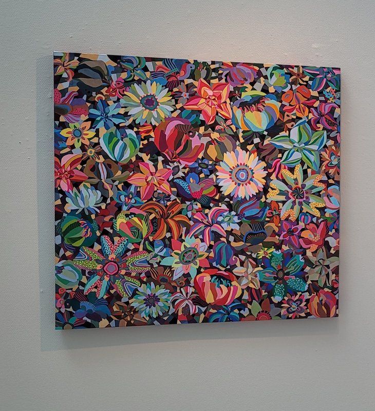 강희주 작가의 작품을 보면 화사하고 다채로운 색감이 돋보입니다. 꽃을 통해 작가가 느끼는 다양한 감정들을 등장하고, 독특한 패턴으로 보여줍니다. 작품에 나타난 감각적인 색채는 보는 이로 하여금 기분 좋은 에너지를 전달해 줍니다. 화려하며 감각적인 색채가 주는 강희주 작가의 작품을 감상하면서 밝은 에너지를 얻어보시기를 바랍니다. 일상 공간을 더욱 풍부하게 밝혀줄 것입니다.