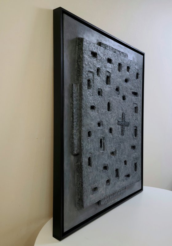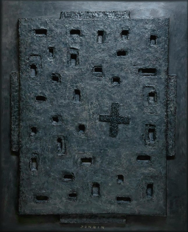 캔버스에는 다양한 도상들이 작품을 가득 채우고 있다. 작가는 작품 안에서 기억, 존재, 왜곡, 침묵 등 무거운 주제를 추상적으로 다룬다. 시간의 흐름 속에 낡고 녹슨 철문에서 보이는 질감과 고색창연한 색들은 내면의 정감을 불러일으키며, 다양한 감정들을 복합적으로 끌어올린다. 작가는 일상의 흔적들을 관심 어린 시선으로 응시하며 이를 작품에 담는다.
