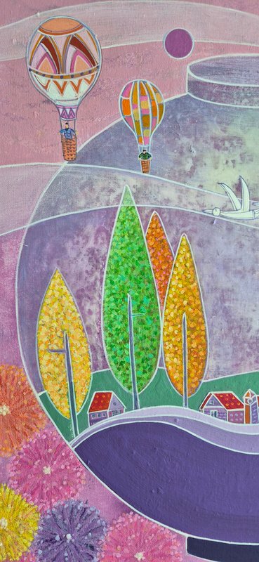 많은 화가는 조형의 기본 단위인 점, 선, 면의 활용에 대한 다양한 탐구를 지속해 왔습니다. 김조원 작가 또한 그러한 작가들과 맥을 같이 하고 있는 것으로 보입니다. 작가는 자연의 풍경에서 위 세 가지 조형 요소들을 활용해 자신이 느낀 인상을 표현하려 하고 있습니다. 이처럼 순수하게 창작의 행위에 임하는 작가의 작품에서는 구상과 비구상의 경계도 허물어지며 틀에 갇힌 표현 양식을 벗어난 자유로운 조형 실험의 태도를 볼 수 있습니다. 화려하게 피어난 꽃은 그 줄기가 어디로 뻗어있는지 가늠할 수 없게 색색의 선과 면으로 그 이면이 막혀있는 모습입니다. 또한 저 멀리까지 뻗은 산속 길은 붉고 푸른 색감으로 비현실적인 인상을 주고 있습니다. 작품에 자신의 상상력을 마음껏 담아내는 일이 너무나 행복하다는 작가의 말처럼 순수한 시선으로 다양한 조형 언어의 말에 귀 기울이는 시간을 가져보시기를 바랍니다.