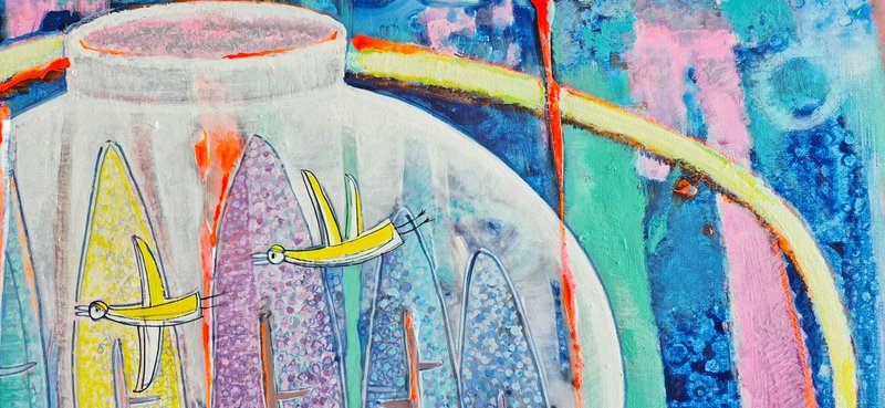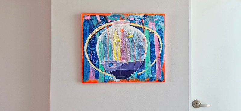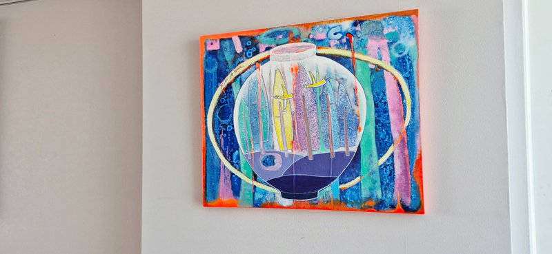 많은 화가는 조형의 기본 단위인 점, 선, 면의 활용에 대한 다양한 탐구를 지속해 왔습니다. 김조원 작가 또한 그러한 작가들과 맥을 같이 하고 있는 것으로 보입니다. 작가는 자연의 풍경에서 위 세 가지 조형 요소들을 활용해 자신이 느낀 인상을 표현하려 하고 있습니다. 이처럼 순수하게 창작의 행위에 임하는 작가의 작품에서는 구상과 비구상의 경계도 허물어지며 틀에 갇힌 표현 양식을 벗어난 자유로운 조형 실험의 태도를 볼 수 있습니다. 화려하게 피어난 꽃은 그 줄기가 어디로 뻗어있는지 가늠할 수 없게 색색의 선과 면으로 그 이면이 막혀있는 모습입니다. 또한 저 멀리까지 뻗은 산속 길은 붉고 푸른 색감으로 비현실적인 인상을 주고 있습니다. 작품에 자신의 상상력을 마음껏 담아내는 일이 너무나 행복하다는 작가의 말처럼 순수한 시선으로 다양한 조형 언어의 말에 귀 기울이는 시간을 가져보시기를 바랍니다.