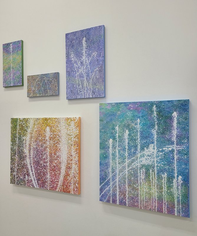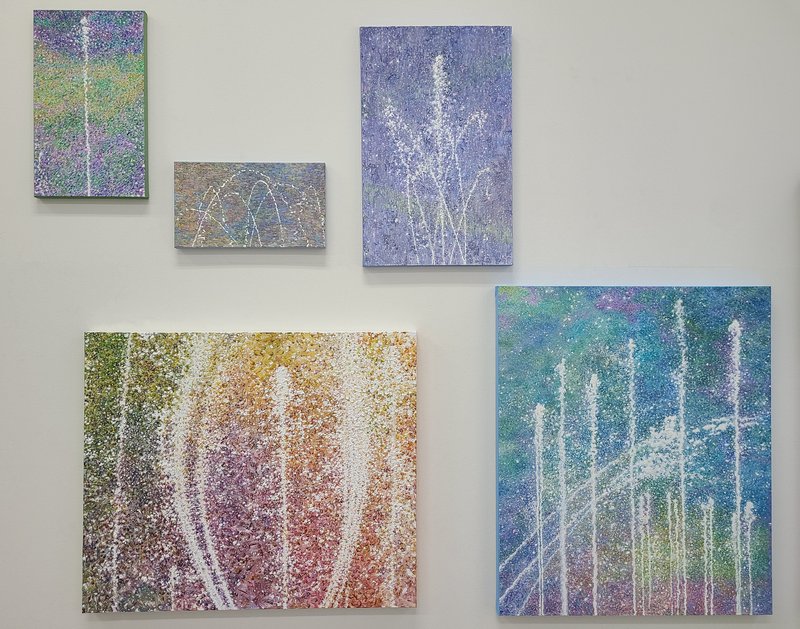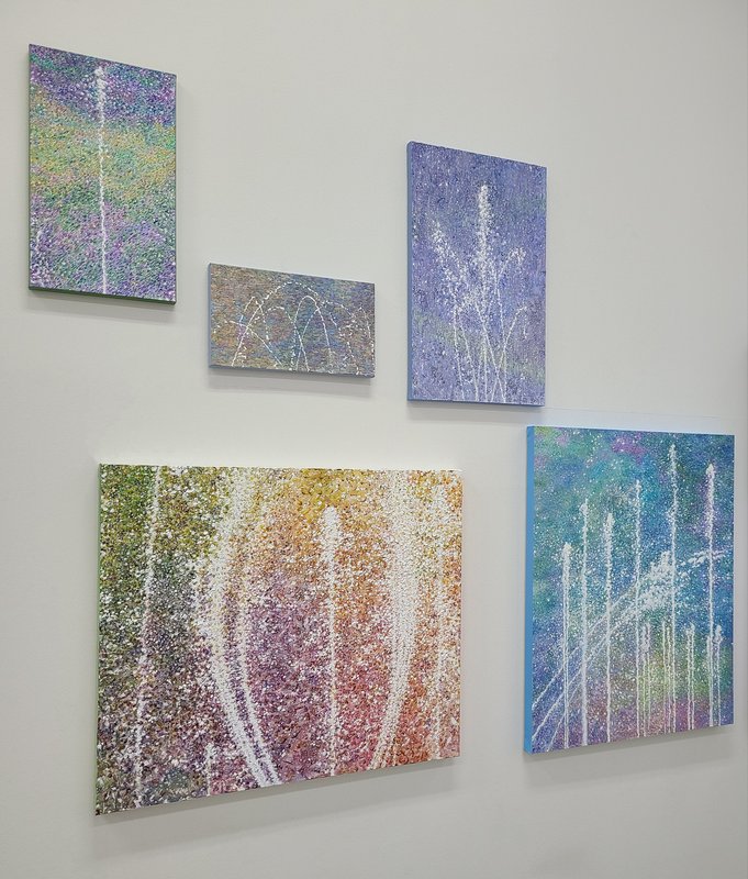 분수대에서 뿜어져 나온 물방울들이 오색 빛깔로 퍼지는 모습이나, 건물 외벽 창문에 비치는 풍경, 한겨울 나무에 달린 얼음 결정 등 작가는 일상 속에서 반복적으로 마주하는 장면들을 포착해 작품으로 옮겨낸다. 구체적인 장면을 묘사한 듯하지만 그 안에 담긴 것은 사실 코 끝을 스치는 냄새, 피부에 닿는 햇빛의 온도와 순간의 감정 등 복합적인 무형의 것이다. 일상적이고 반복적인 것은 쉬이 간과되게 마련이다. 붓을 들어 그림을 그려가는 과정도 마찬가지인데, 작은 터치 하나가 사소하게 느껴질 수 있지만, 작가의 손길이 남긴 흔적 하나하나는 전체를 완성하기 위해 필연적인 과정이며 유의미하다. 많은 이들이 대부분 새로운 것과 특별한 것에 의미를 두고 추구하며 살아간다. 그러나 특별히 기억에 남지도 않으면서 무의식에 저장되어 익숙함을 유발하는 것들이야말로 우리 삶에서 큰 부분을 차지한다는 것을 잊어서는 안 된다. 작가는 이렇게 작은 순간의 축적이 세월이 되고 삶을 형성해 나가는 것에 초점을 두고 소중한 모든 과정들을 기록하듯 캔버스 위에 흔적을 남긴다.