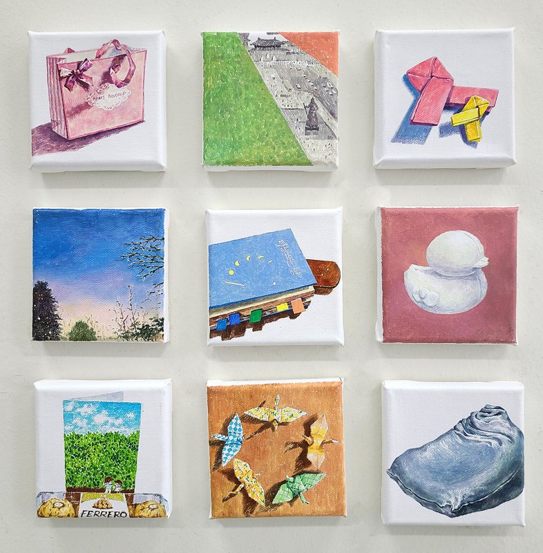 염수윤 작가는 ‘오늘 이 순간’의 소중함에 집중하며 하루하루 감사한 마음으로 살아가고 있는데요, 여러분은 어떠한 생각으로 하루를 살아가고 계신가요? ‘오늘도 몸이 아프지 않고 건강하게 하루를 시작할 수 있게 해 주셔서 감사합니다’, ‘오늘도 내가 좋아하는 음식을 마음껏 먹을 수 있어서 정말 감사합니다’ 또는 ‘오늘도 진심을 다해 나다운 삶을 살 수 있어서 감사합니다’. 이렇게 작가는 평범한 하루 속에서 작고 사소하더라도 감사할 수 있는 순간들을 그림으로 담아냅니다. 작은 크기의 작품이지만, 작가의 기록을 하나씩 모아서 어떤 감사한 순간을 그린 것인지 상상하는 재미가 있습니다. 작가님 일상에서 따뜻하고 소중했던 조각들을 통해 우리도 위로받고 힘을 낼 수 있을 것만 같은데요! 작품들을 감상하시면서, 하루하루의 소중함에 집중하여 삶을 조금 더 긍정적으로 바라보는 것은 어떨까요?