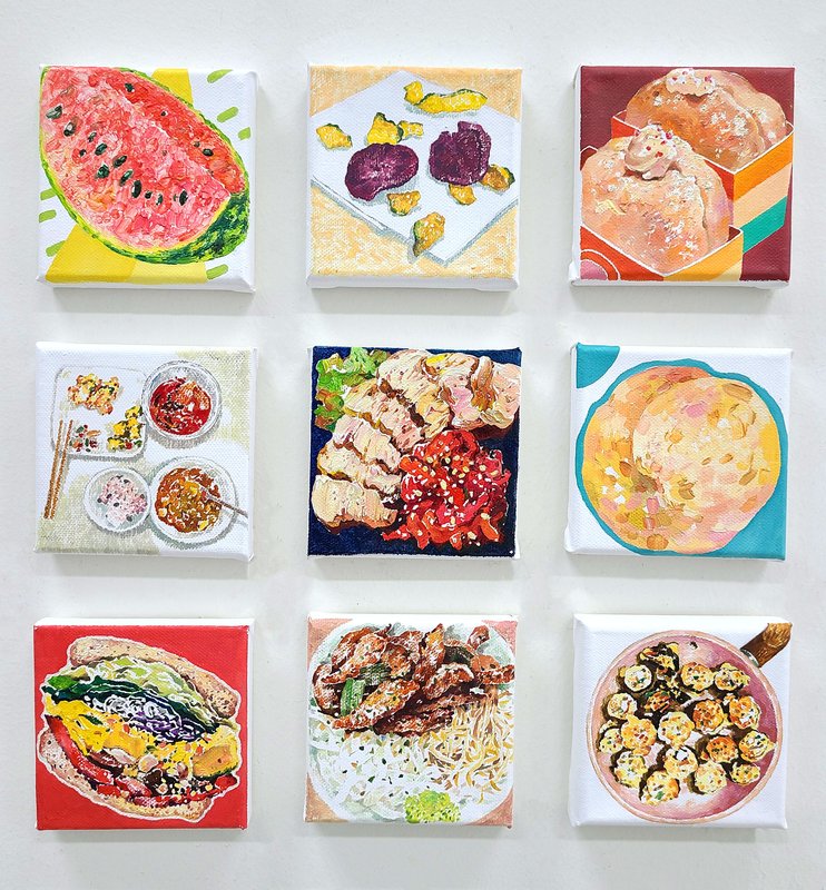 염수윤 작가는 ‘오늘 이 순간’의 소중함에 집중하며 하루하루 감사한 마음으로 살아가고 있는데요, 여러분은 어떠한 생각으로 하루를 살아가고 계신가요? ‘오늘도 몸이 아프지 않고 건강하게 하루를 시작할 수 있게 해 주셔서 감사합니다’, ‘오늘도 내가 좋아하는 음식을 마음껏 먹을 수 있어서 정말 감사합니다’ 또는 ‘오늘도 진심을 다해 나다운 삶을 살 수 있어서 감사합니다’. 이렇게 작가는 평범한 하루 속에서 작고 사소하더라도 감사할 수 있는 순간들을 그림으로 담아냅니다. 작은 크기의 작품이지만, 작가의 기록을 하나씩 모아서 어떤 감사한 순간을 그린 것인지 상상하는 재미가 있습니다. 작가님 일상에서 따뜻하고 소중했던 조각들을 통해 우리도 위로받고 힘을 낼 수 있을 것만 같은데요! 작품들을 감상하시면서, 하루하루의 소중함에 집중하여 삶을 조금 더 긍정적으로 바라보는 것은 어떨까요?