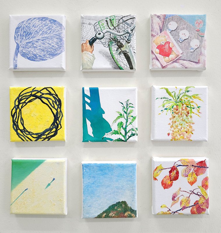 염수윤 작가는 ‘오늘 이 순간’의 소중함에 집중하며 하루하루 감사한 마음으로 살아가고 있는데요, 여러분은 어떠한 생각으로 하루를 살아가고 계신가요? ‘오늘도 몸이 아프지 않고 건강하게 하루를 시작할 수 있게 해 주셔서 감사합니다’, ‘오늘도 내가 좋아하는 음식을 마음껏 먹을 수 있어서 정말 감사합니다’ 또는 ‘오늘도 진심을 다해 나다운 삶을 살 수 있어서 감사합니다’. 이렇게 작가는 평범한 하루 속에서 작고 사소하더라도 감사할 수 있는 순간들을 그림으로 담아냅니다. 작은 크기의 작품이지만, 작가의 기록을 하나씩 모아서 어떤 감사한 순간을 그린 것인지 상상하는 재미가 있습니다. 작가님 일상에서 따뜻하고 소중했던 조각들을 통해 우리도 위로받고 힘을 낼 수 있을 것만 같은데요! 작품들을 감상하시면서, 하루하루의 소중함에 집중하여 삶을 조금 더 긍정적으로 바라보는 것은 어떨까요?