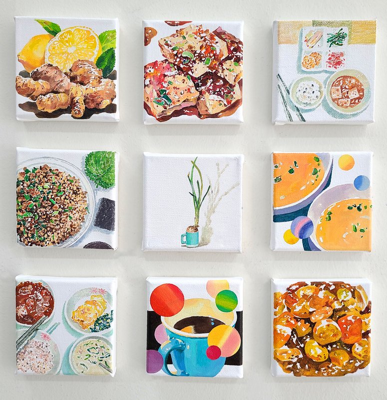 염수윤 작가는 ‘오늘 이 순간’의 소중함에 집중하며 하루하루 감사한 마음으로 살아가고 있는데요, 여러분은 어떠한 생각으로 하루를 살아가고 계신가요? ‘오늘도 몸이 아프지 않고 건강하게 하루를 시작할 수 있게 해 주셔서 감사합니다’, ‘오늘도 내가 좋아하는 음식을 마음껏 먹을 수 있어서 정말 감사합니다’ 또는 ‘오늘도 진심을 다해 나다운 삶을 살 수 있어서 감사합니다’. 이렇게 작가는 평범한 하루 속에서 작고 사소하더라도 감사할 수 있는 순간들을 그림으로 담아냅니다. 작은 크기의 작품이지만, 작가의 기록을 하나씩 모아서 어떤 감사한 순간을 그린 것인지 상상하는 재미가 있습니다. 작가님 일상에서 따뜻하고 소중했던 조각들을 통해 우리도 위로받고 힘을 낼 수 있을 것만 같은데요! 작품들을 감상하시면서, 하루하루의 소중함에 집중하여 삶을 조금 더 긍정적으로 바라보는 것은 어떨까요?