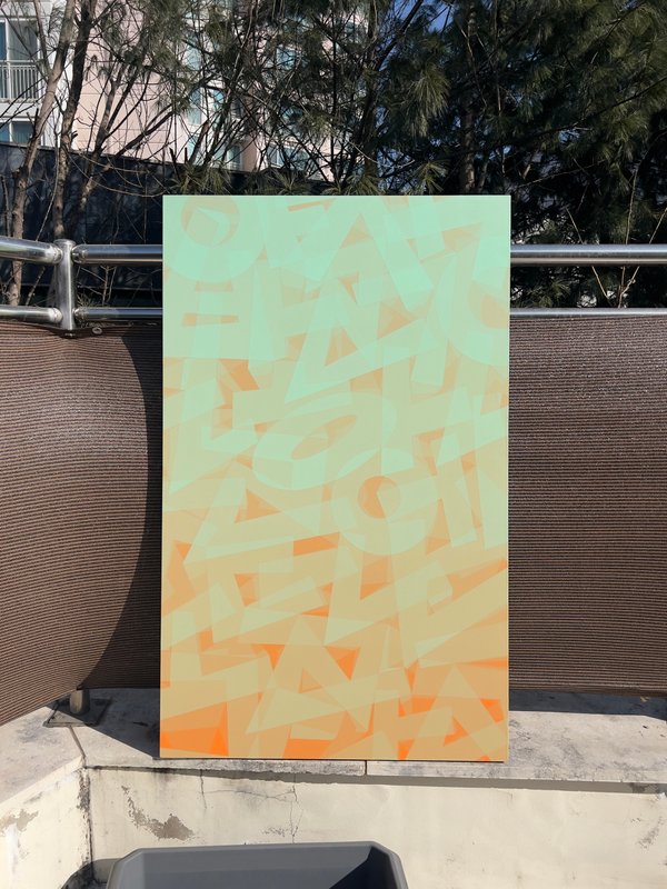 규정되지 않으며 누구에게나 열려있는 길거리라는 공간에서 자신의 작업을 선보이는 것에 소신 있게 예술 행위를 이어온 ENZO작가의 회화 작업은 압축된 형태로 더 많은 관객을 만나려 한다. 다년간의 예술적 고민과 신념, 그래피티의 전통적 성격을 고수해 오던 자신만의 틀을 깨려는 심리적 변화는 깨지고 부서지는 폰트로 형상화하였다. 글자는 메시지를 전달하기 위해 쓰일 때가 많다. 그러나 ENZO작가의 작품에서 글자는 더 이상 메시지를 담고 있지 않으며, 어떤 규정이나 틀도 해체하려 하는 그래피티의 자유분방함과 반항적 기제를 표출하고 있다. 깨지고 부서진 글자 조각들은 점차 지층처럼 한데 쌓여 축적된 모습으로 변화한다. 여기에 자연스러운 컬러 그라데이션으로 안정감이 느껴지는 화면이 완성된다. 작가는 그간 화이트 큐브의 경계를 넘지 않기 위해 애쓰던 작가가 큐브 안에서 보여줄 수 있는 자신의 신념을 시각화시킨 것이 아닐까 하는 생각이 든다. 여러 방면으로 작가의 작품을 감상하고 느껴본다면 그것이 품은 갈증을 더욱 절실히 느낄 수 있을 것이다.