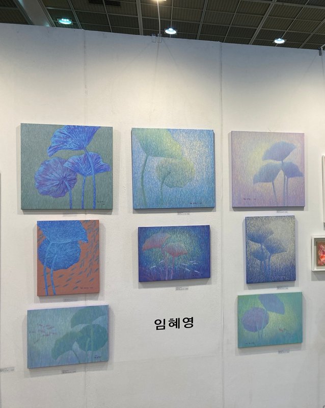 임혜영 작가는 생명력이 대단하다는 연(蓮)을 주제로 삼아 작가만의 섬세한 붓질로 그려낸다. 조형적으로 배치된 연과 겹겹이 물감을 쌓으며 만들어지는 풍부하고 아름다운 색감과 반복적인 붓터치는 흐름을 만들어내고 화면에 평온함을 자아낸다. 특히 작가는 연이 잎을 틔우고 꽃과 열매를 맺는 일련의 성장 과정에 집중해 표현한다. 하늘을 향해 뻗어 오르는 연의 모습을 화폭에 담아내며 환경에 굴하지 않는 단단한 모습에 용기를 얻는다는 작가는, 작업을 통해 희망과 용기처럼 우리가 일상에서 쉽게 잊고야 마는 순수한 감정들을 전달하고자 한다. 끈기를 가지고 불행과 시련에 굴하지 않고 나아가는 모든 사람들의 발걸음을 응원하는 것이다. 이처럼 작가의 연은 감상자로 하여금 용기를 북돋아 준다.