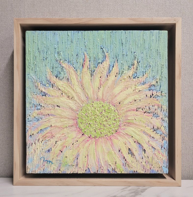 임혜영 작가는 자연물을 주된 소재로 삼아 절제된 구성과 표현을 통해 용기와 희망의 메세지를 전한다. 단조로운 구성이지만 그 안은 여러 색감의 물감들이 겹겹이 층을 이루고 있다. 그 위를 나이프를 사용해 일정한 방향으로 그어 내어 풍부한 색감이 드러난다. 작가는 산책을 통해 작업의 영감을 얻는다. 작은 식물들의 사랑스러움, 서로 다른 생명들이지만 그들이 조화롭게 어우러지는 모습을 통해 느껴지는 감정들을 캔버스에 기록해 나간다. 일정한 흐름의 붓 터치는 화면에 평온함을 자아낸다. 낮은 채도의 색감은 작품의 감동을 오랜 시간 이어갈 수 있도록 한다. 작품 속에는 작가가 느꼈던 생명의 에너지가 고스란히 담겨 있다.