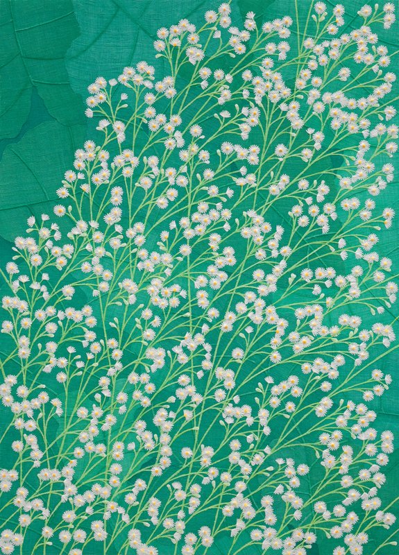 작가는 도심 속 자연공간을 유랑자의 시선으로 바라보고 있습니다. 차갑고, 치열하며, 고단한 도시에서 유랑자인 작가는 잠시 시스템에서 벗어나 개인으로서 여유를 찾아갑니다. 작가는 ‘모시’라는 독특한 소재와 콜라주의 방식을 사용합니다. 모시의 독특한 질감은 도시의 양면성을 의미하며, 콜라주 기법은 개인들의 이야기와 감정들이 붙어가는 공간이라는 의미를 갖습니다. 작가의 작품들을 한 문장으로 표현한다면 ‘세련된 고즈넉함’입니다. 작품 전반에 흐르는 편안함과 고풍스러움은 현대적인 표현과 만나 작가만의 독특한 표현법으로 나타납니다. 작품의 관객으로서 작가와 함께 도시의 유람자가 되어 편안한 여유를 즐기실 수 있기를 기대합니다.