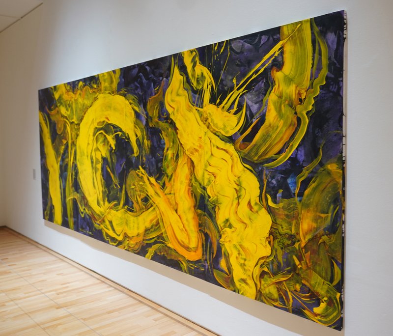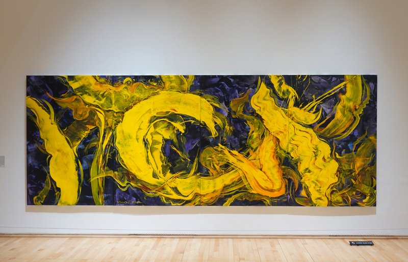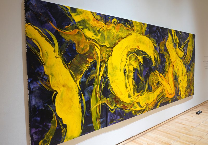 윤옥순 작가는 지난 30여 년간 '지(地)·수(水)·화(花)·풍(風)’을 주제로 작품 활동을 이어왔다. 그중 화(花)에 있어 작가는 불 화(花) 자를 꽃 화(花) 자로 대신하여 작품을 제작한다. 윤옥순 작가가 화폭에 담아내는 해바라기에서는 자연의 생명력이 강하게 드러난다. 꽃의 부분을 클로즈업하여 화면 가득 배치한 구성안에는 섬세하고 디테일한 묘사가 돋보이는 부분부터 붓을 잡은 작가의 움직임과 손길이 그대로 드러나는 터치까지 모두 볼 수 있다. 그런 이유로 작가의 작품 속 꽃은 정적인 이미지로 그저 아름다운 대상으로써만 존재하기보다는, 내재한 에너지가 시각적으로 역동성 있게 드러난다. 구상에서 추상을 은근하게 넘나드는 작가의 표현은 형상의 재현이 아니라, 꽃을 바라보는 이의 감정과 시각, 꽃을 통해 표현하고자 하는 개념을 드러내는 데에 목적이 있다는 것을 알 수 있게 한다.